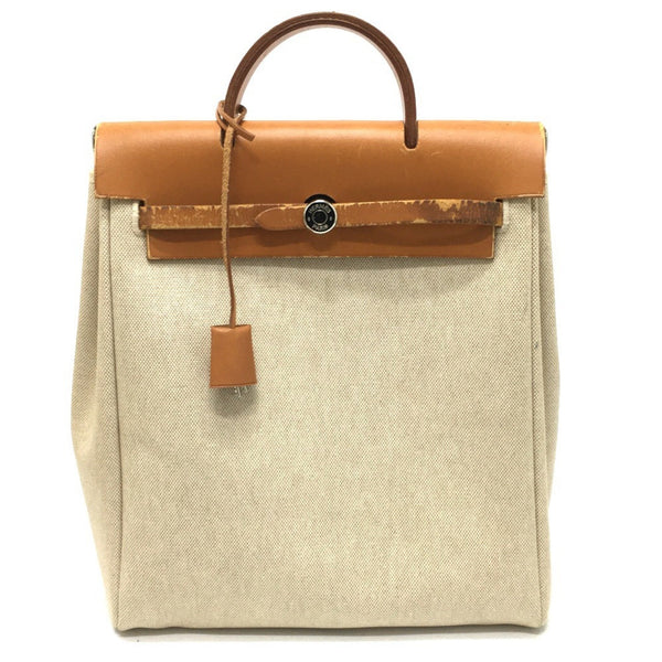 HERMES Airbag Ad PM 2-Way Backpack with Spare Bag, Leather/Toile GM, Women\'s, Natural Beige