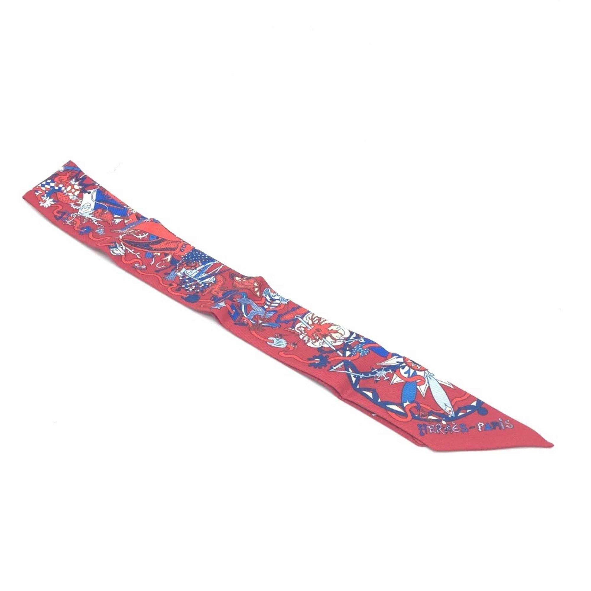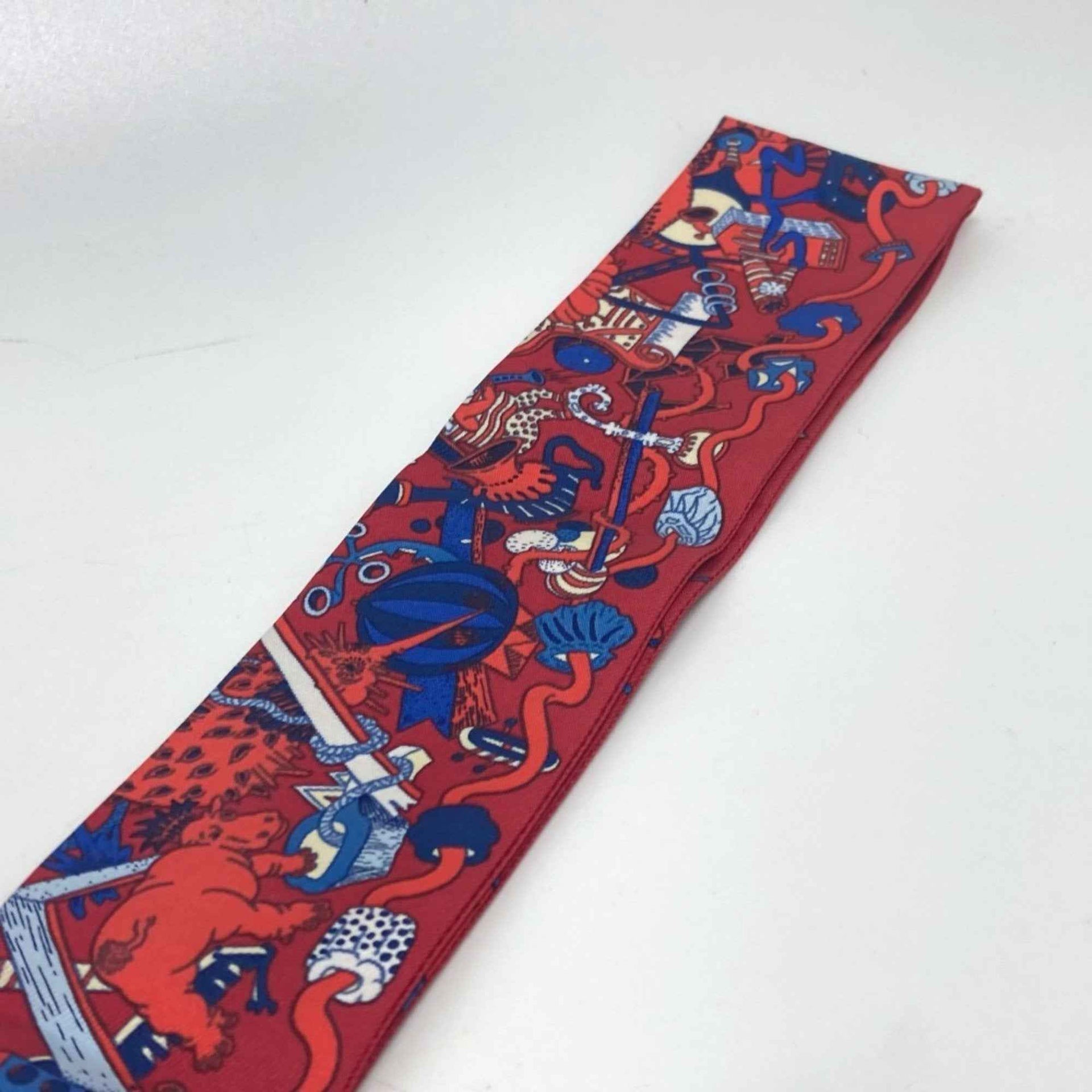 HERMES Animal Twilly Scarf, Silk, Women\'s, Red