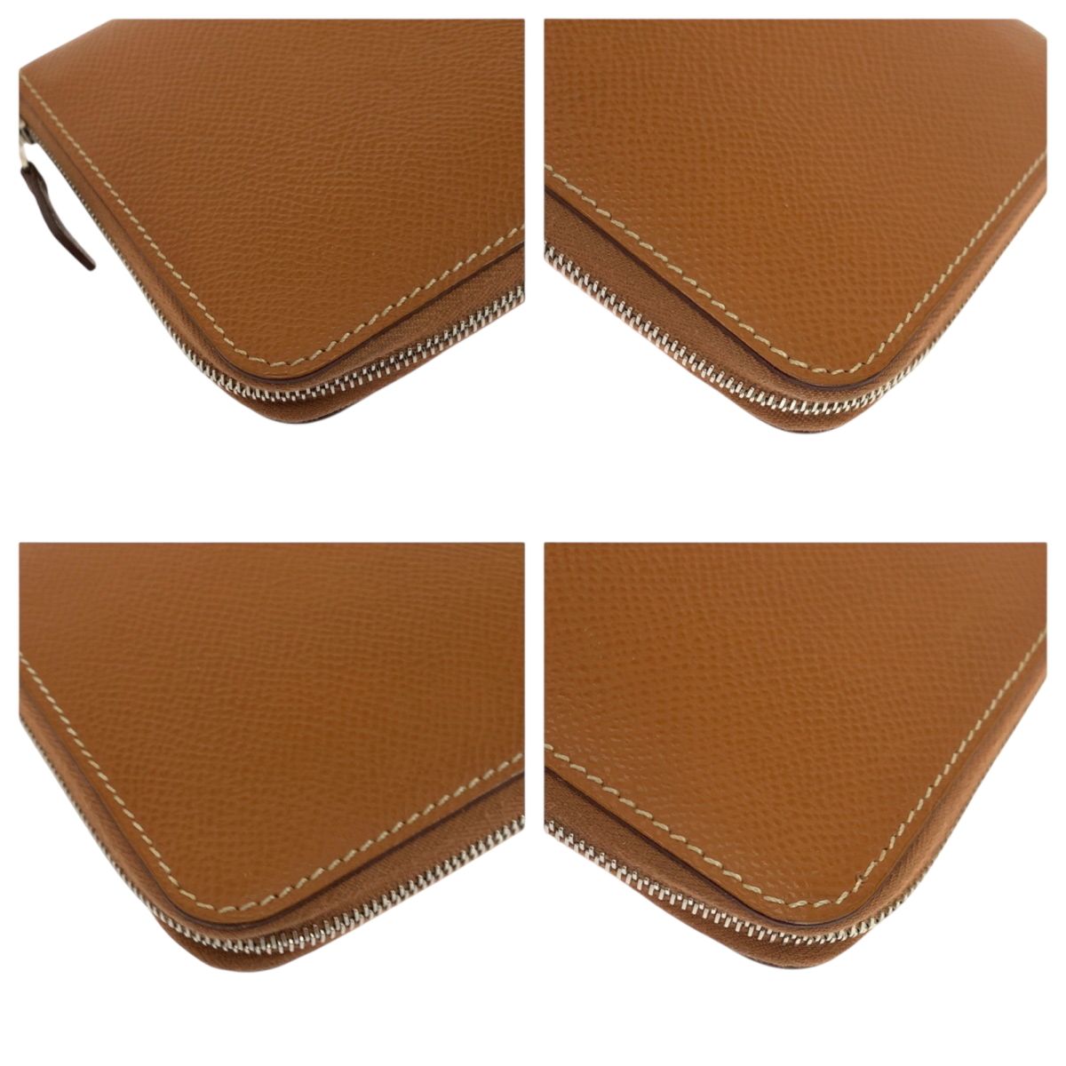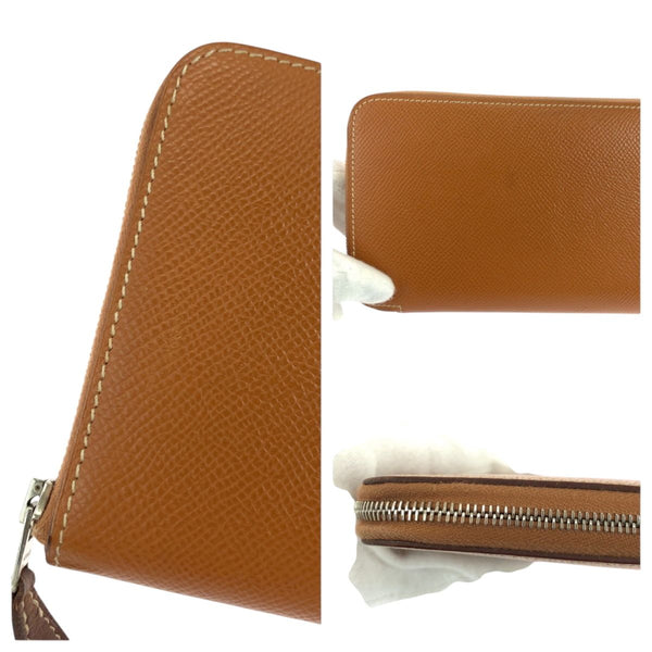 HERMES Azap Long Silk In Gold Brown Silver Hardware Epsom Leather Wallet Round Zipper X Stamp Women\'s