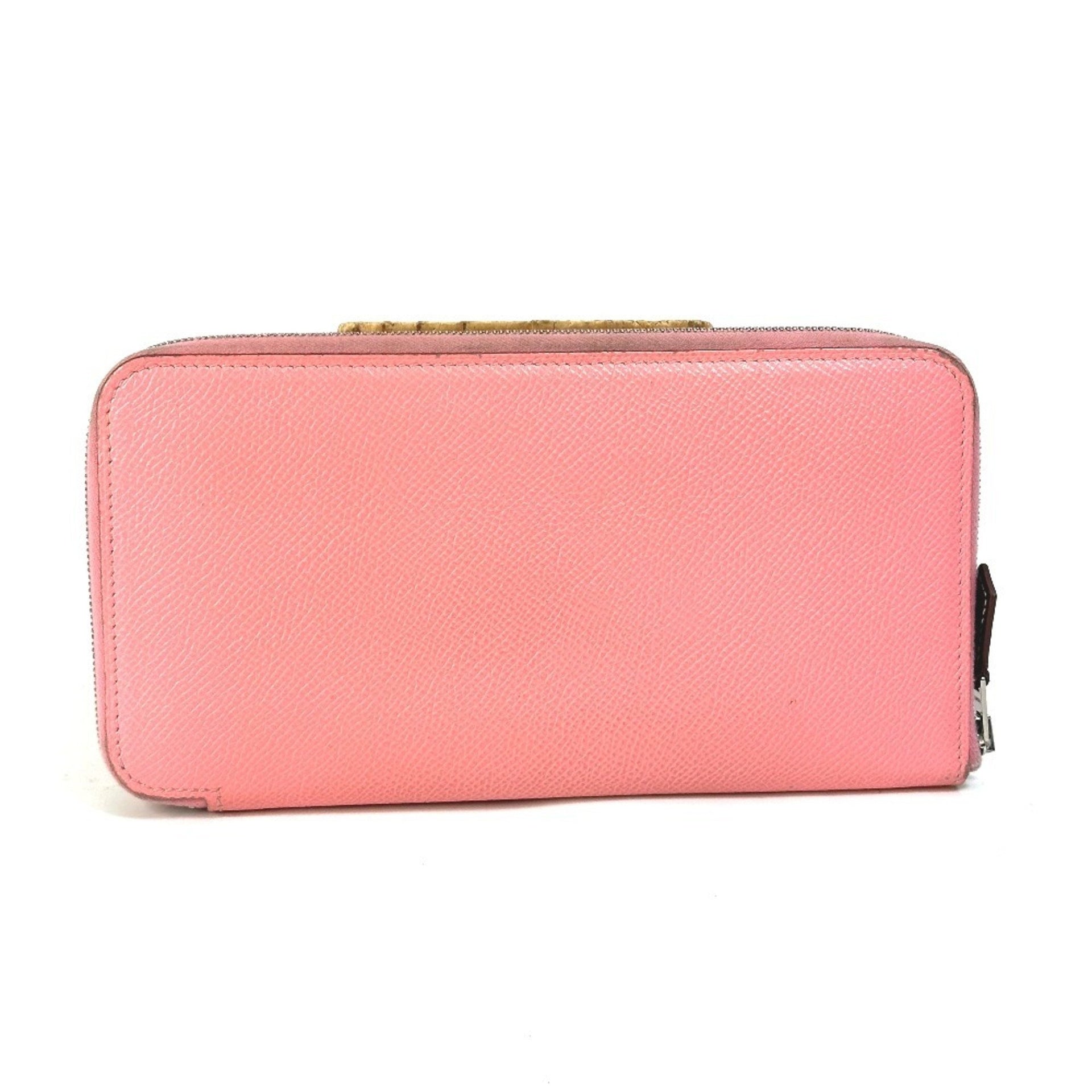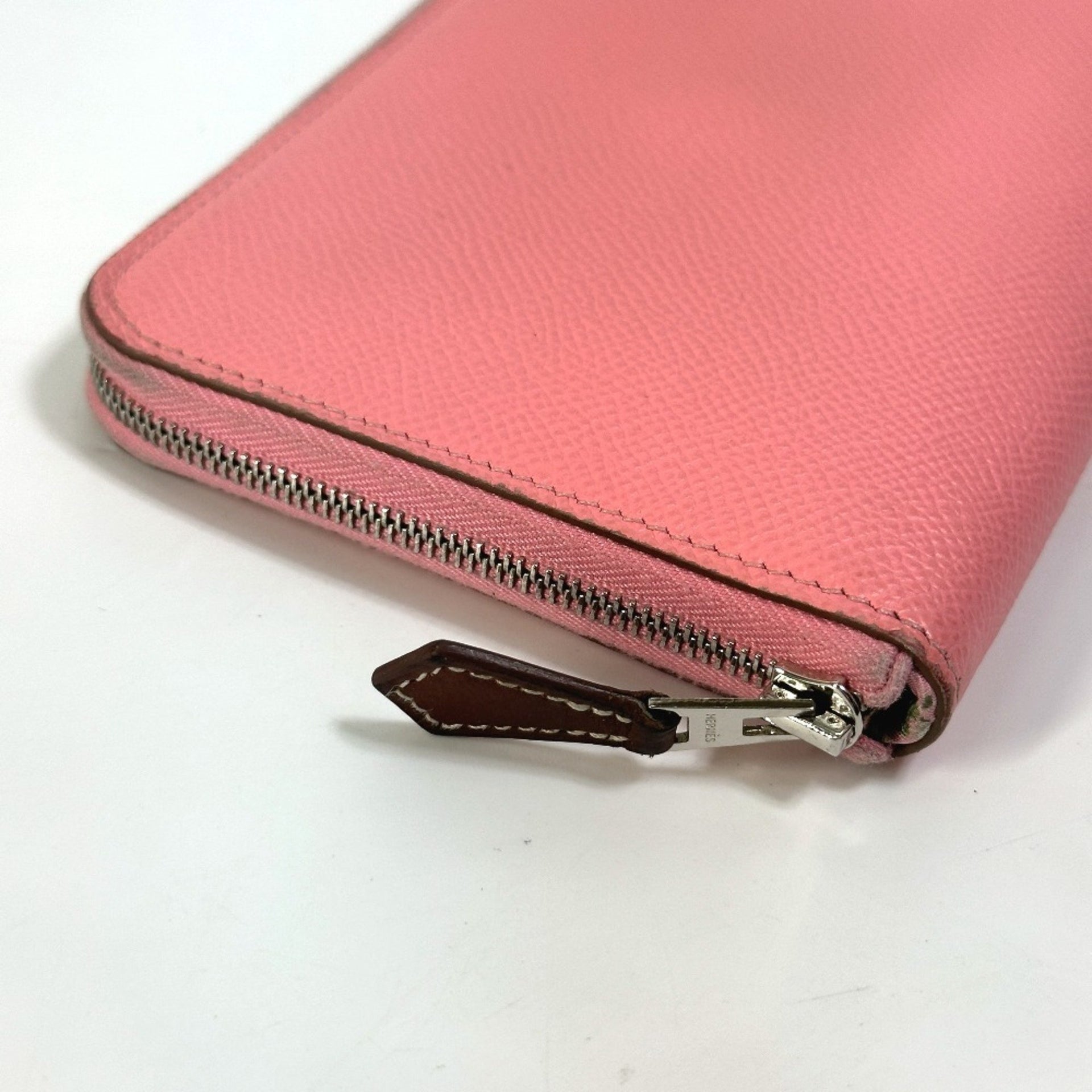 HERMES Azap Long Silk-in Round Zip Wallet, Epsom Leather, Women\'s, Pink