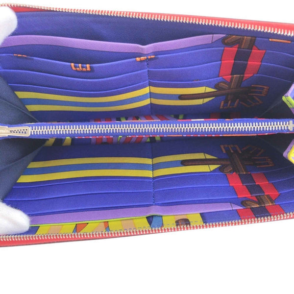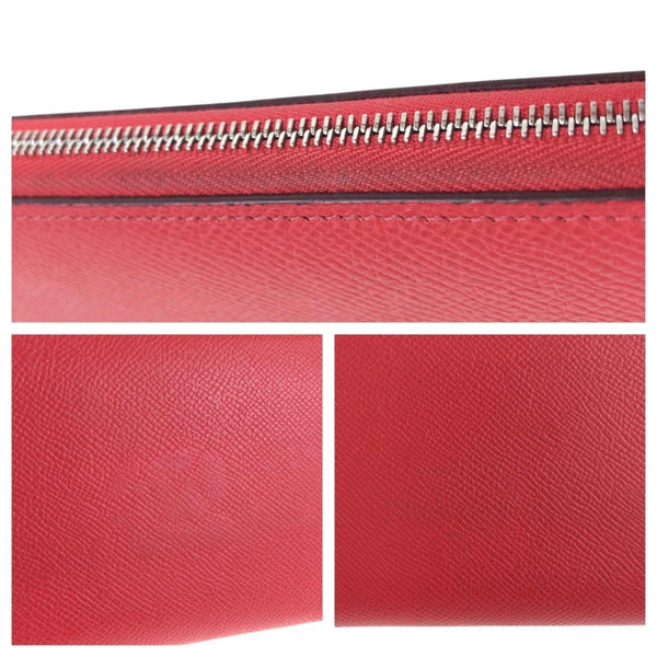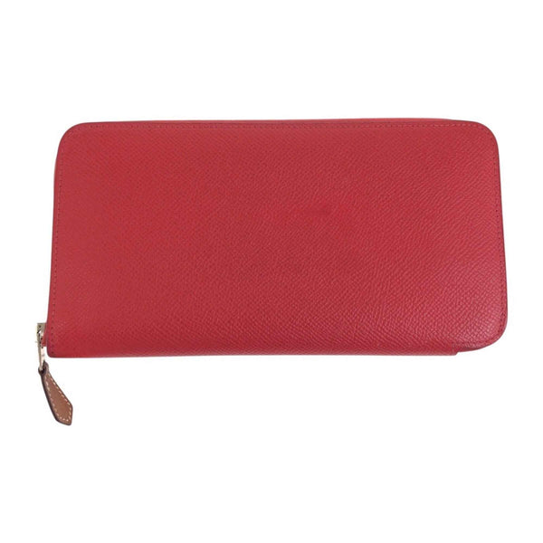 HERMES Azap Silkin Rouge Red Silver Hardware Epsom Leather Long Wallet A Stamp Women\'s
