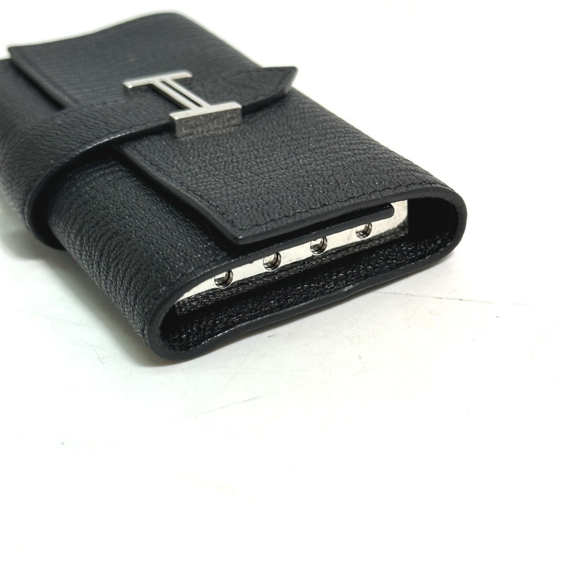 HERMES Bearn 4-ring key case with H hardware, Chevre Mysore, unisex, black