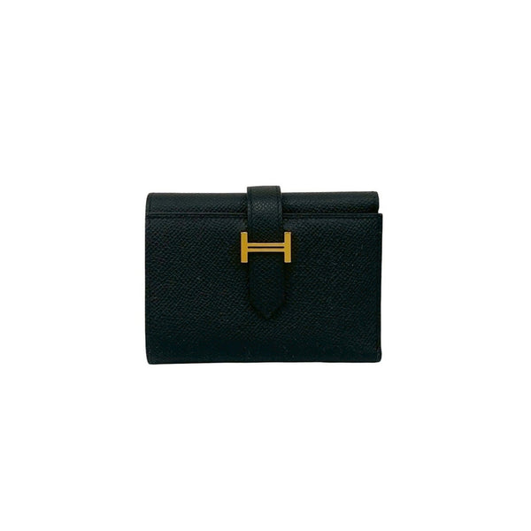 HERMES Bearn Combination Epsom Leather Tri-fold Wallet Black 45456 W