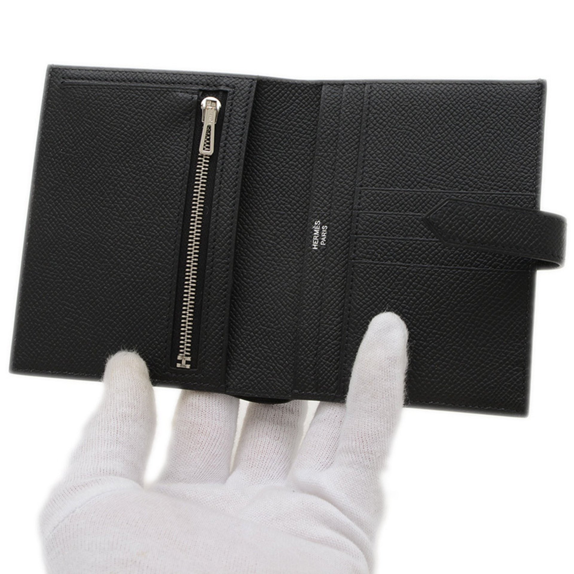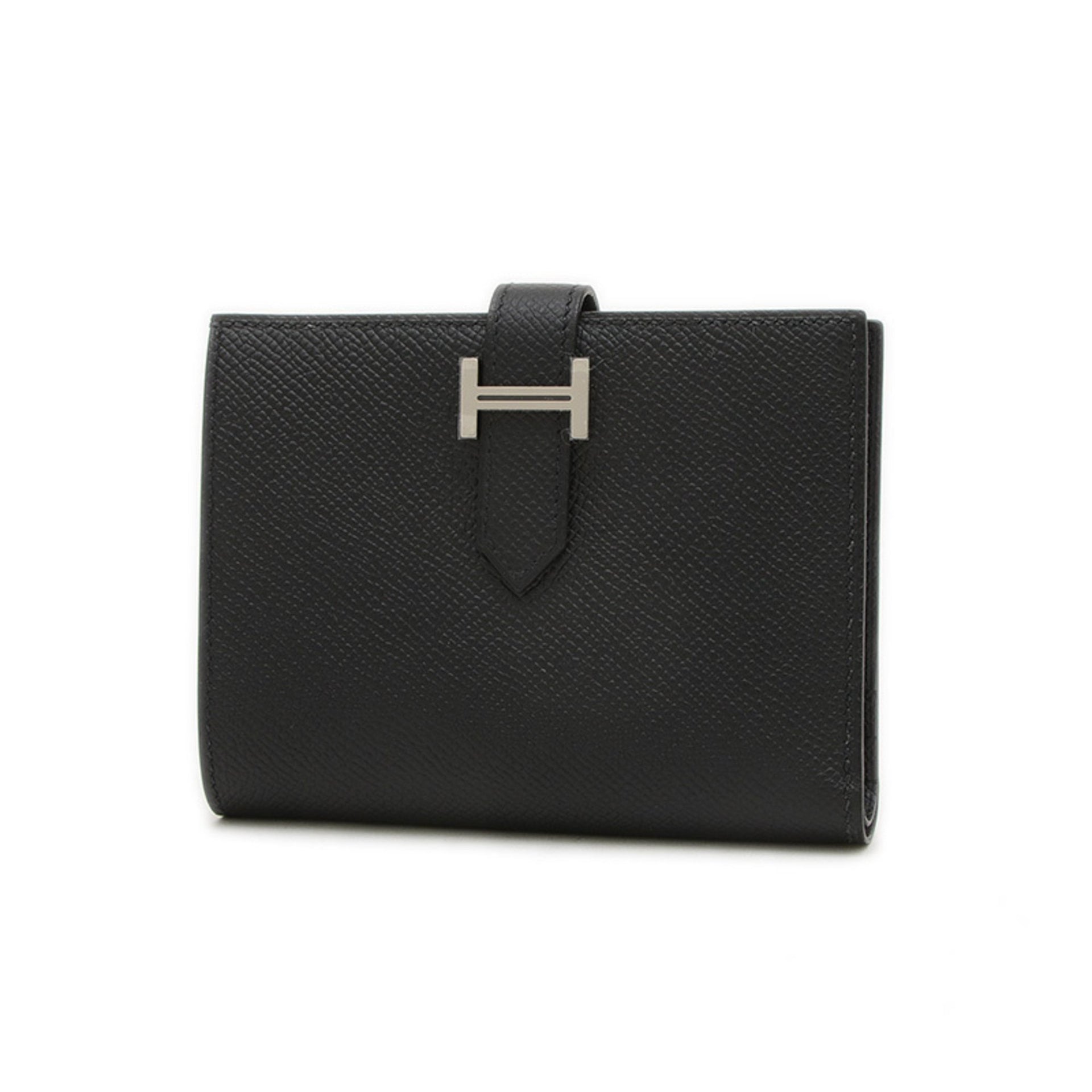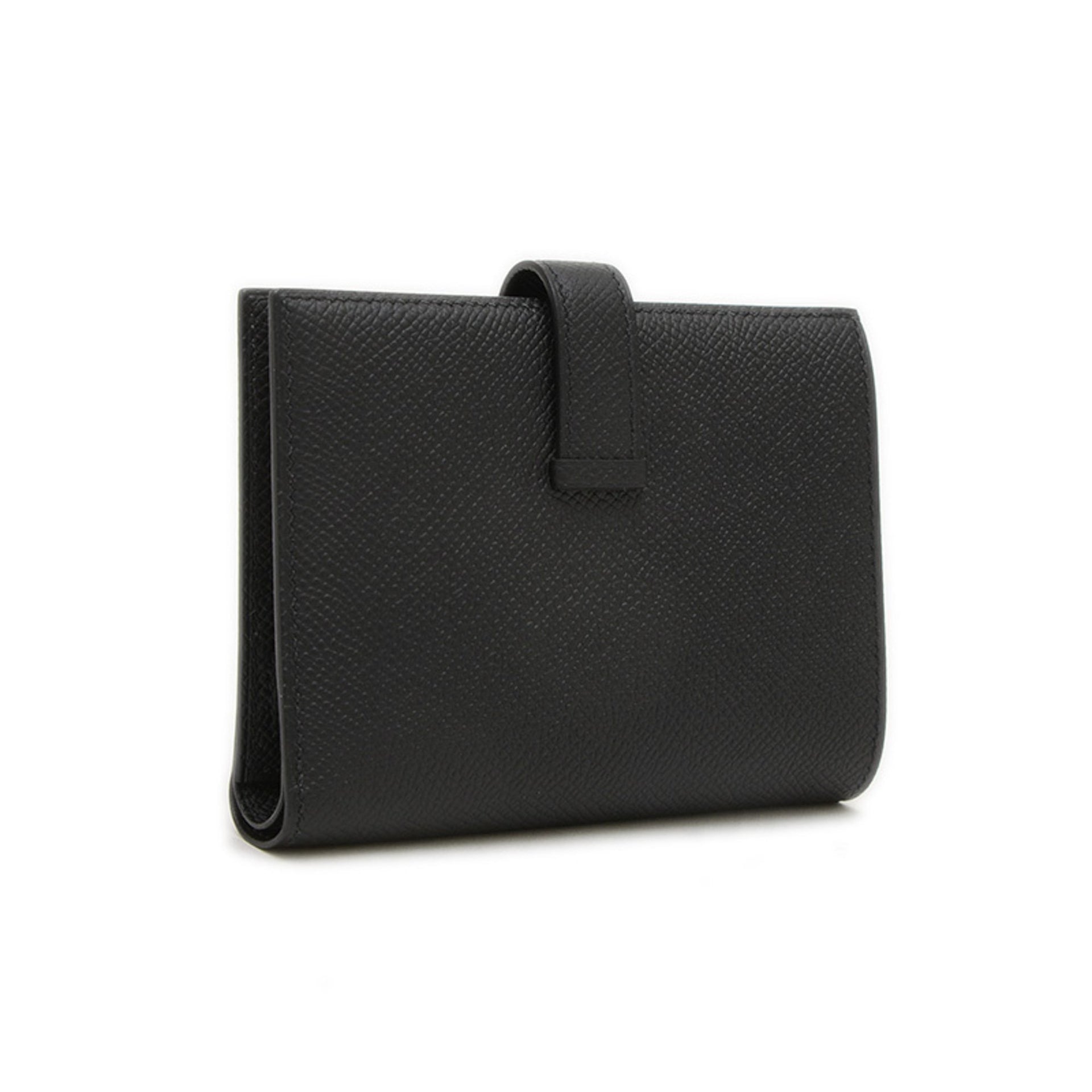Hermes Bearn Compact Wallet Epson Black Silver Hardware W Stamp BP