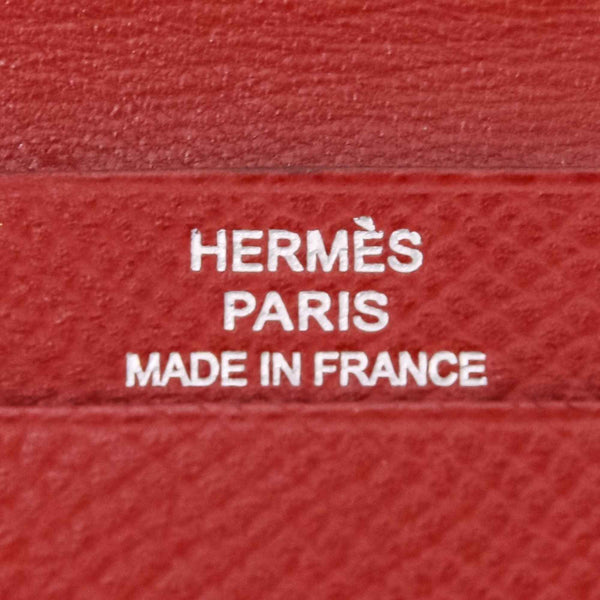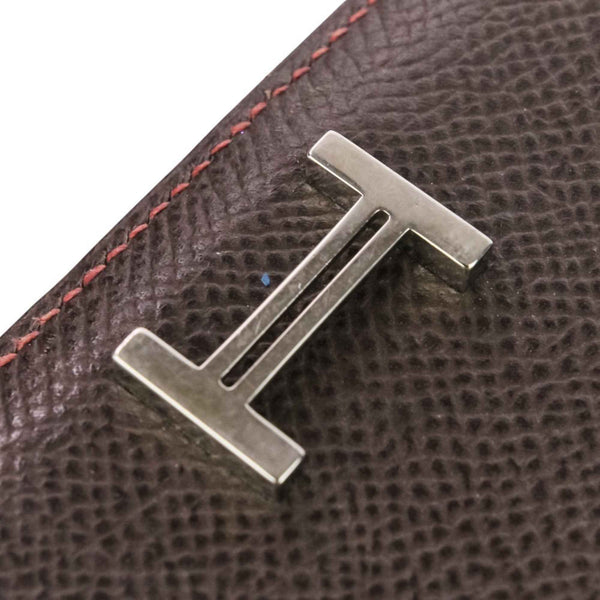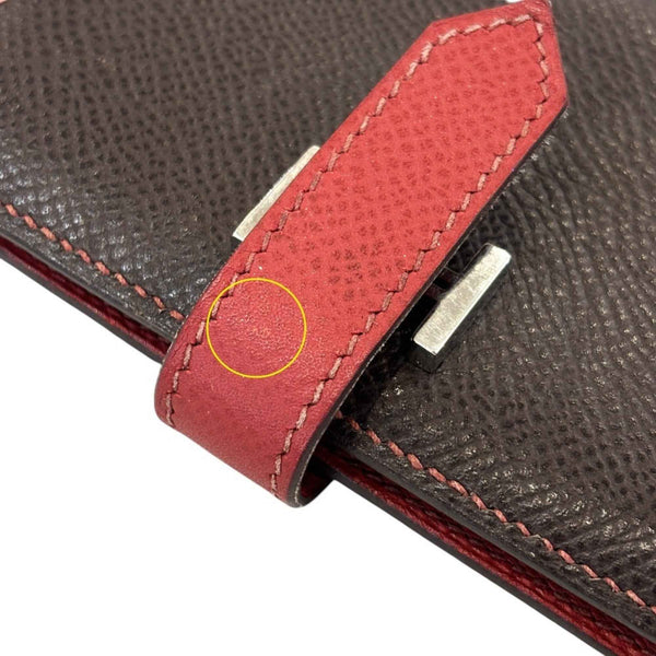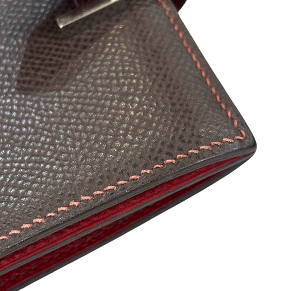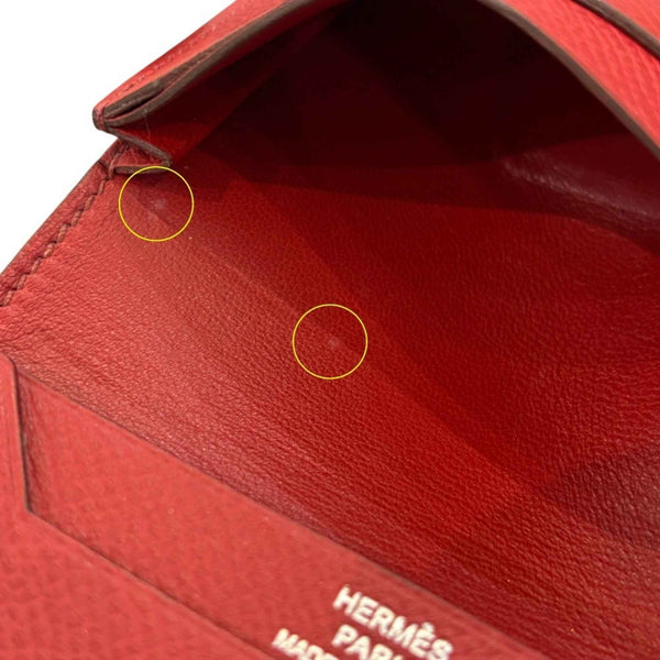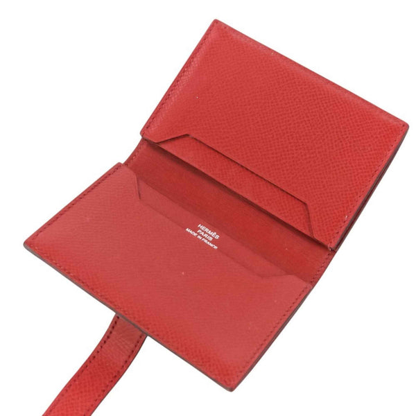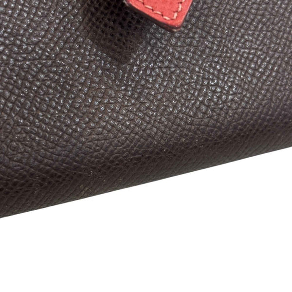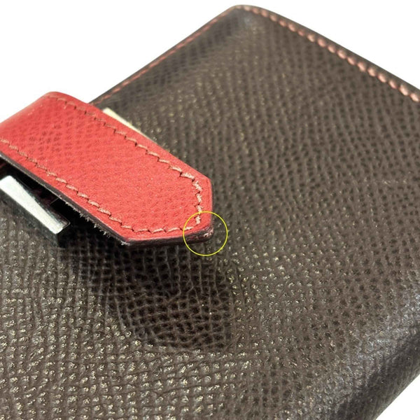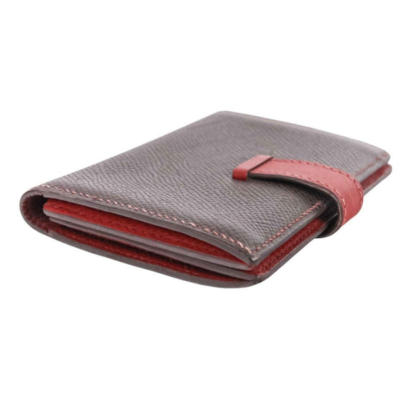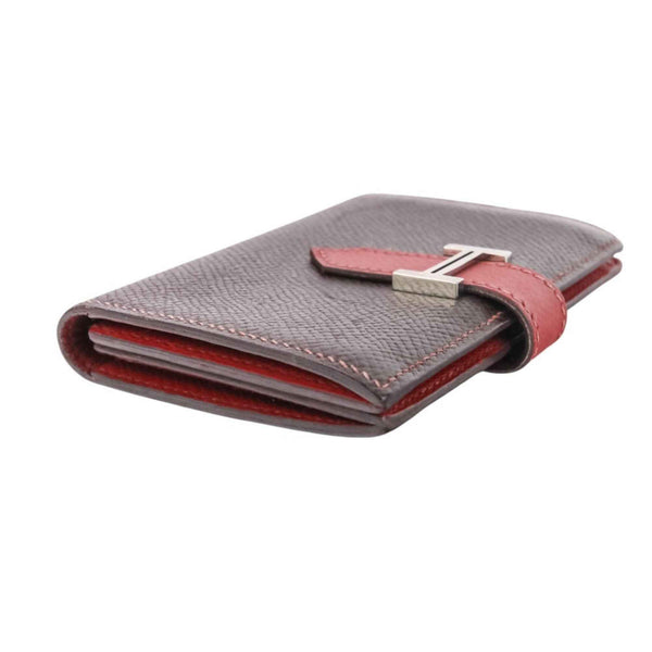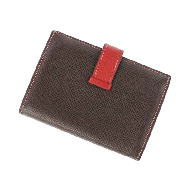 HERMES Bearn Mini Business Card Case/Card Case Compact Wallet in Epsom Leather, Brown and Red, with L Stamp, Women\'s