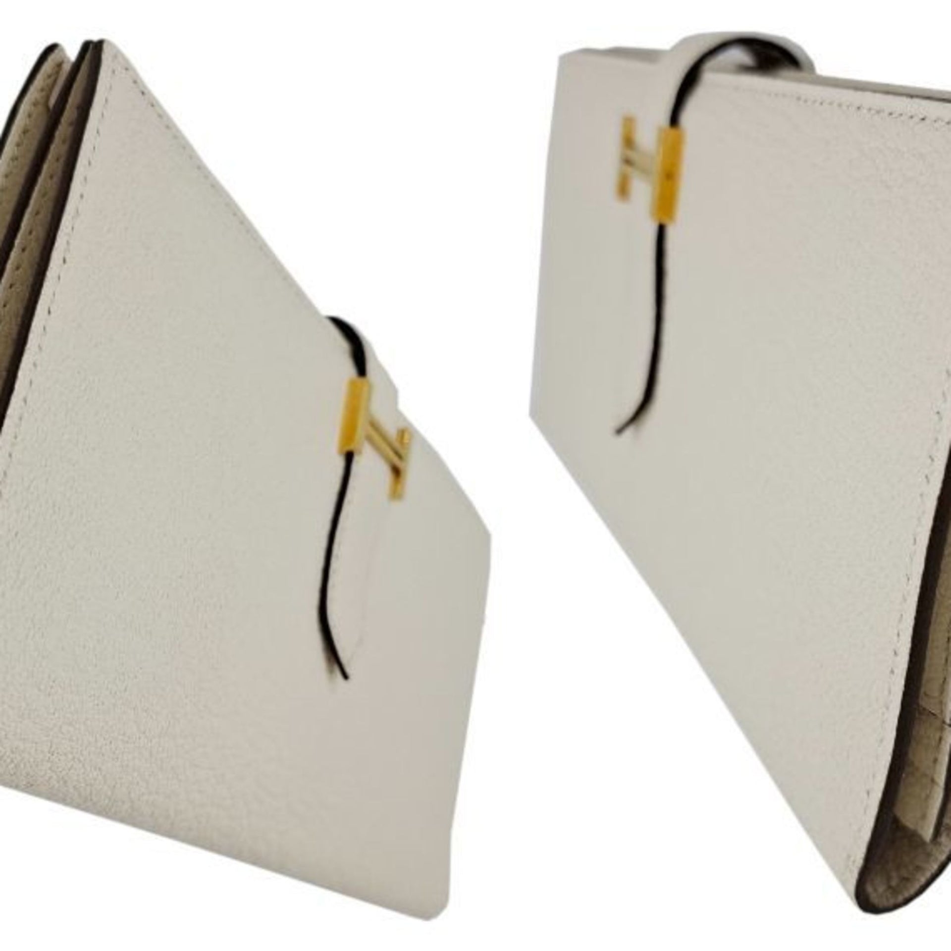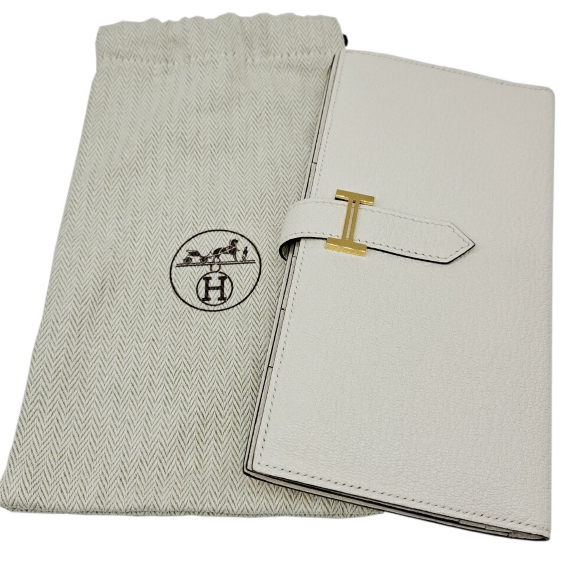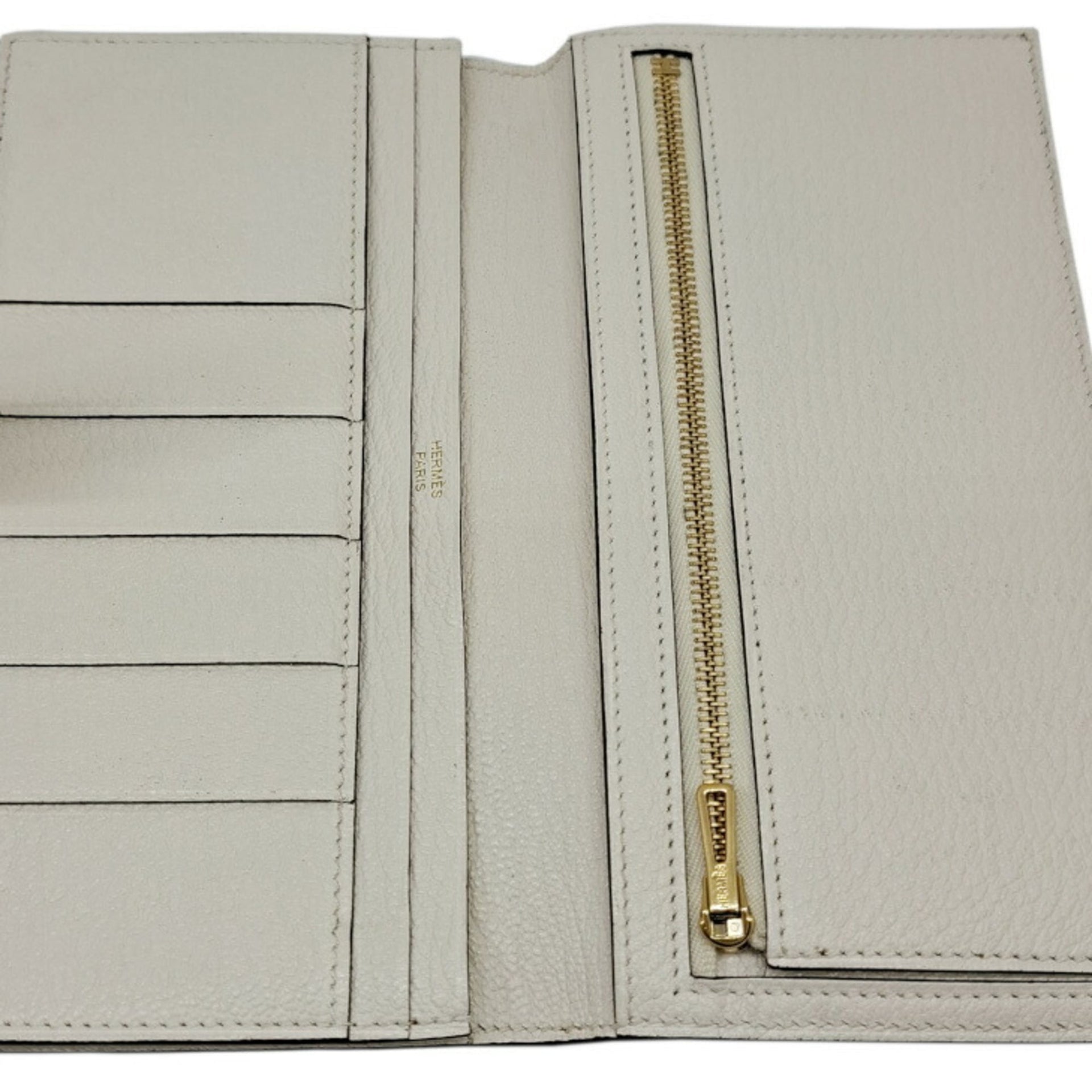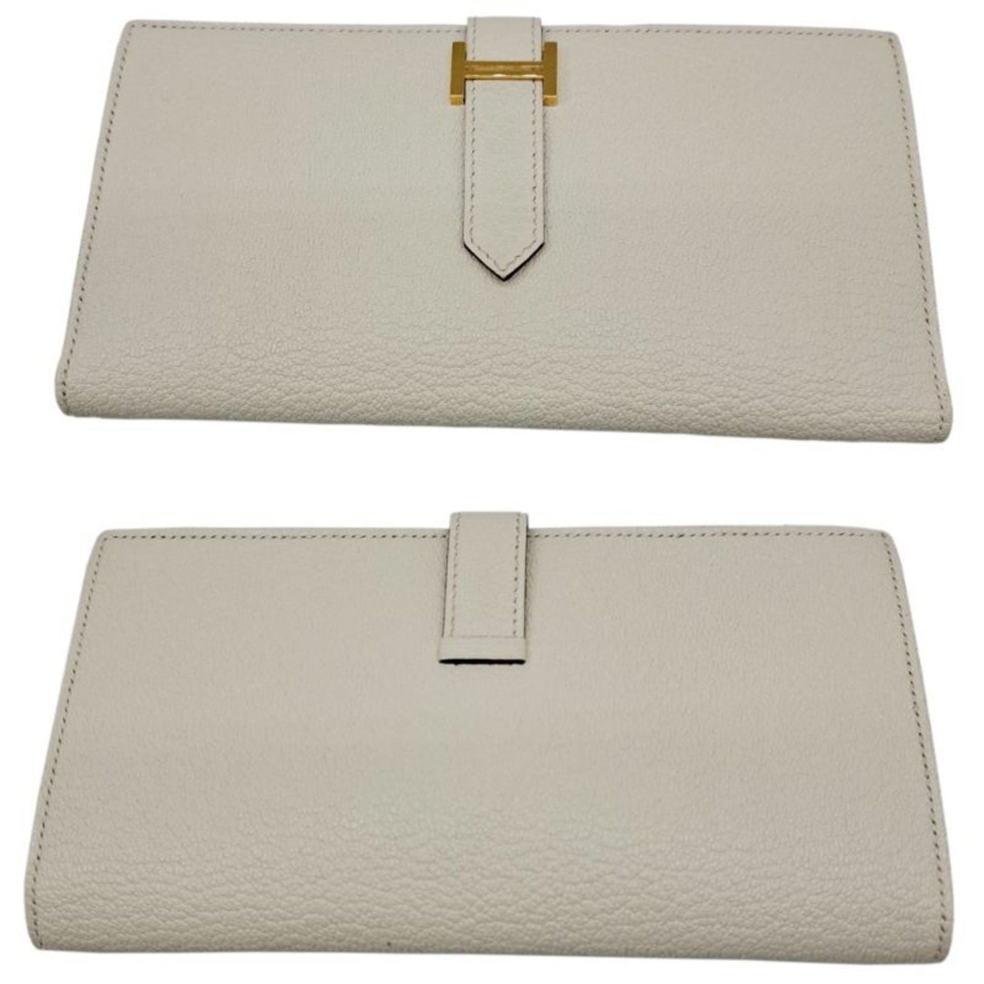 HERMES Bearn Soufflet Chevre Mushroom 2-fold long wallet with U stamp, 2022, white, H, for women and men