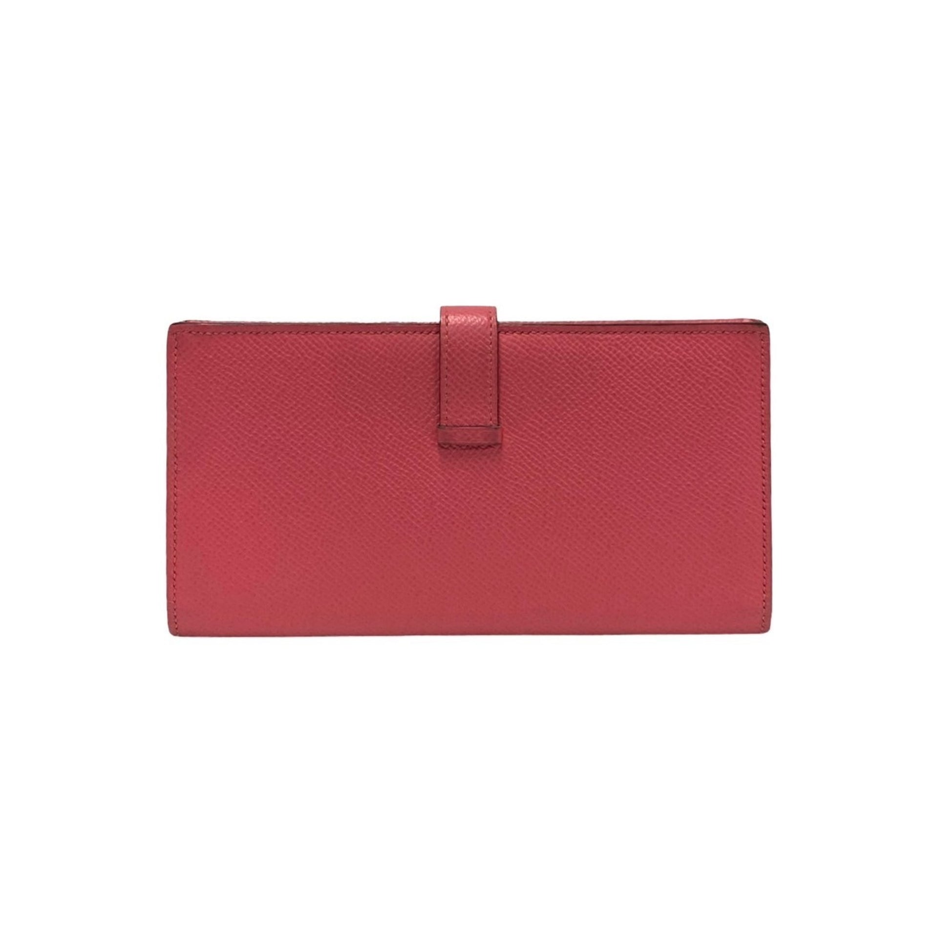 HERMES Bearn Soufflet Leather Bifold Long Wallet with Epsom and Coin Purse, Pink, 33928