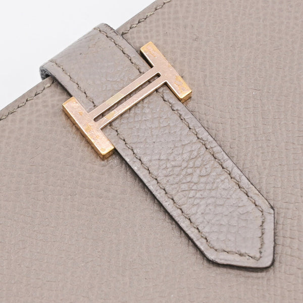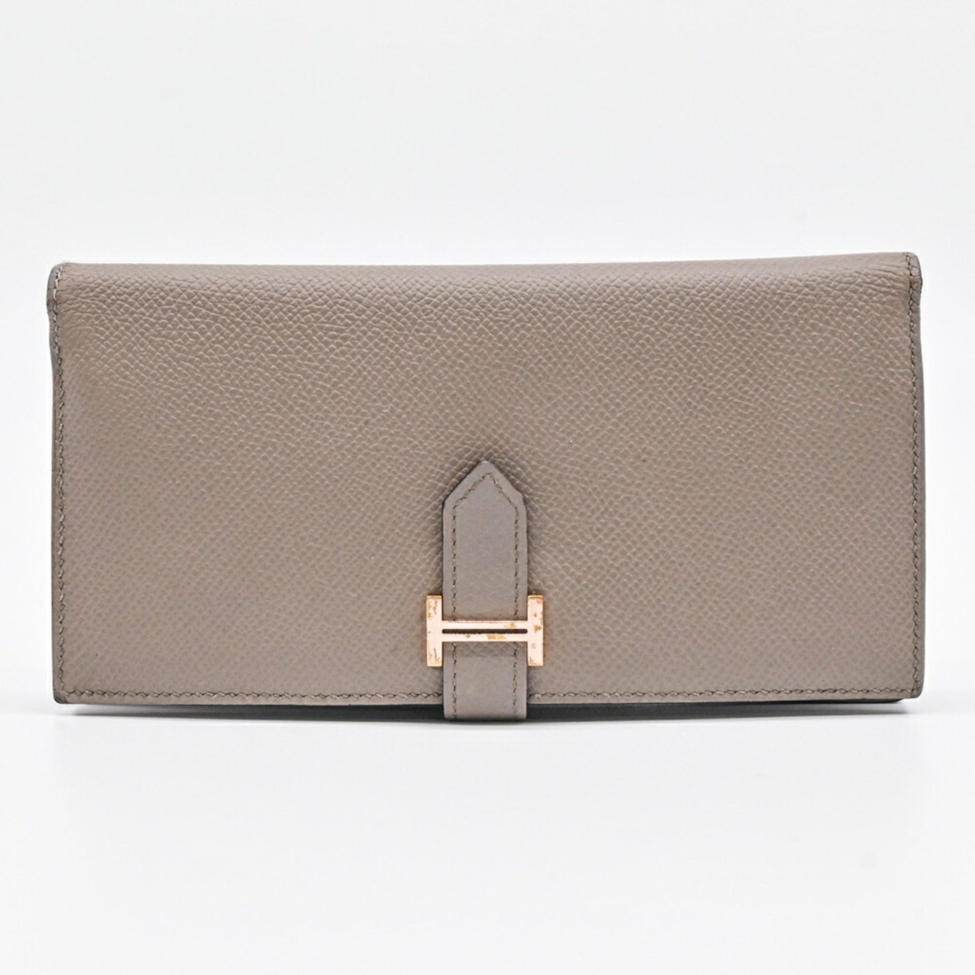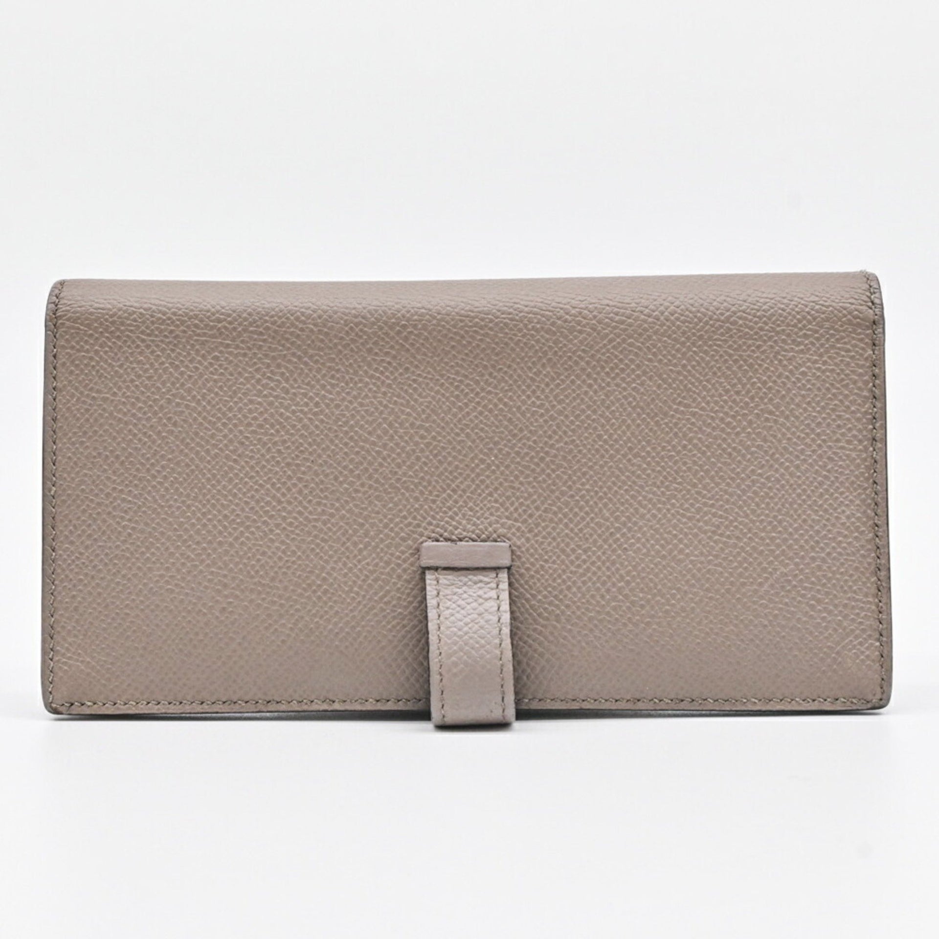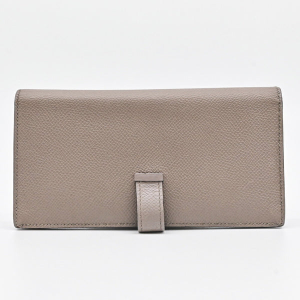 HERMES Bearn Soufflet Long Wallet Epsom Leather Greige Gris Asphalt #C