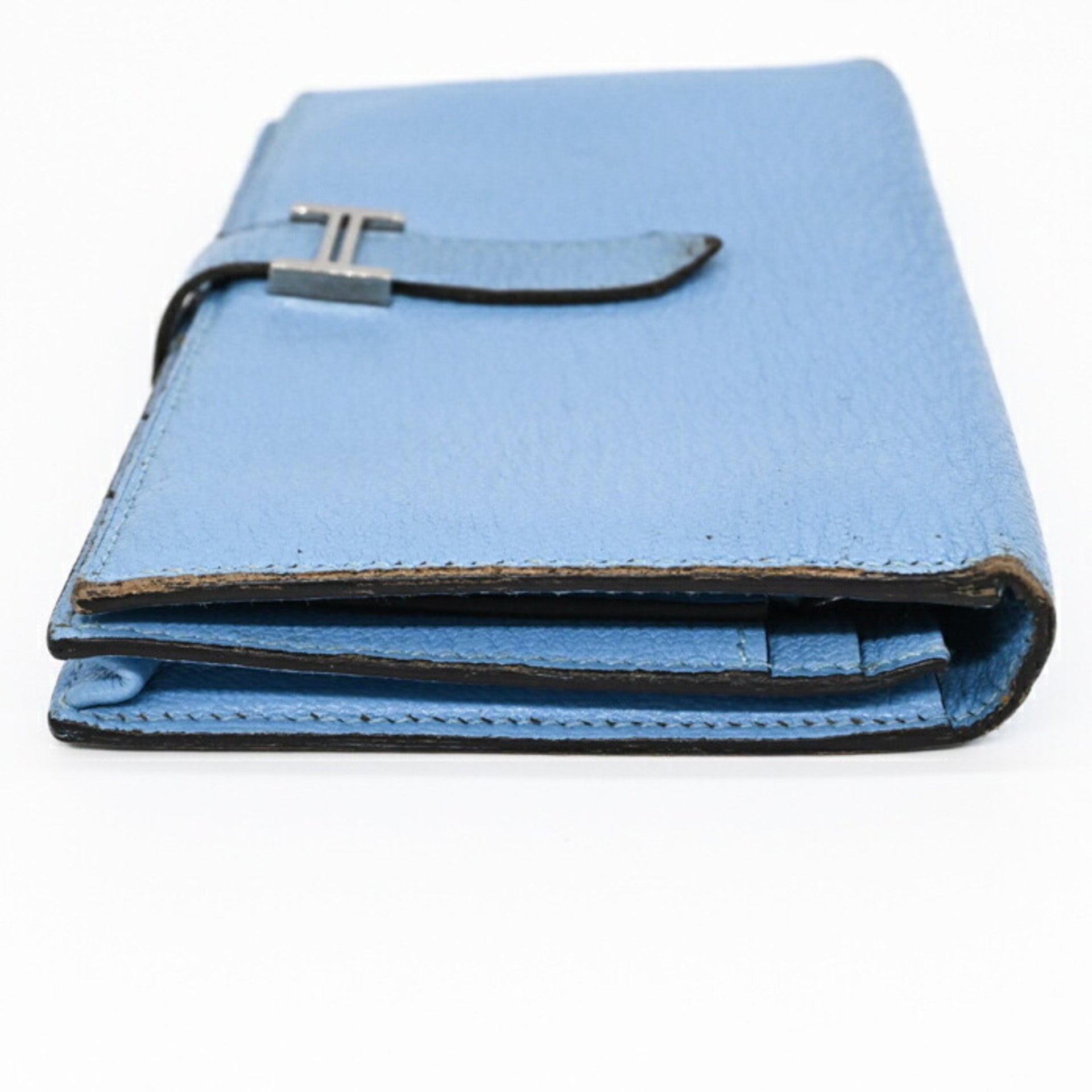 HERMES Bearn Soufflet Long Wallet in Swift Leather, Pastel Blue, Celeste #C