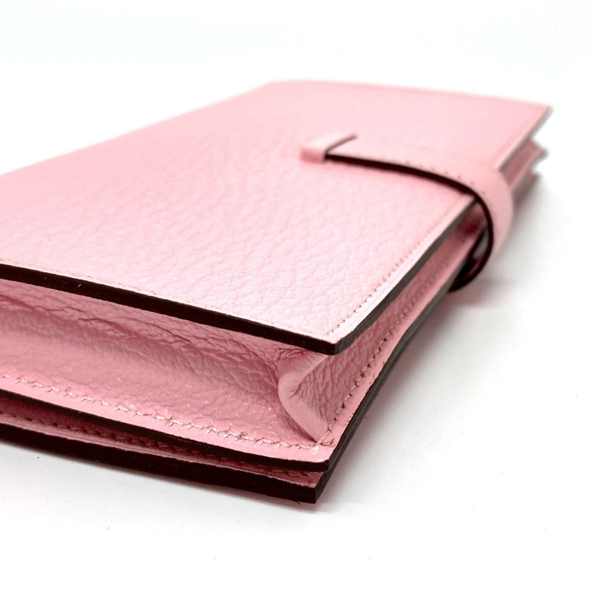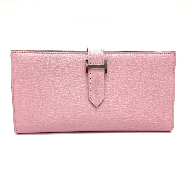 HERMES Bearn Soufflet Long Wallet with H Hardware, Chevre Mysore, Rose Sakura, Pink, for Women
