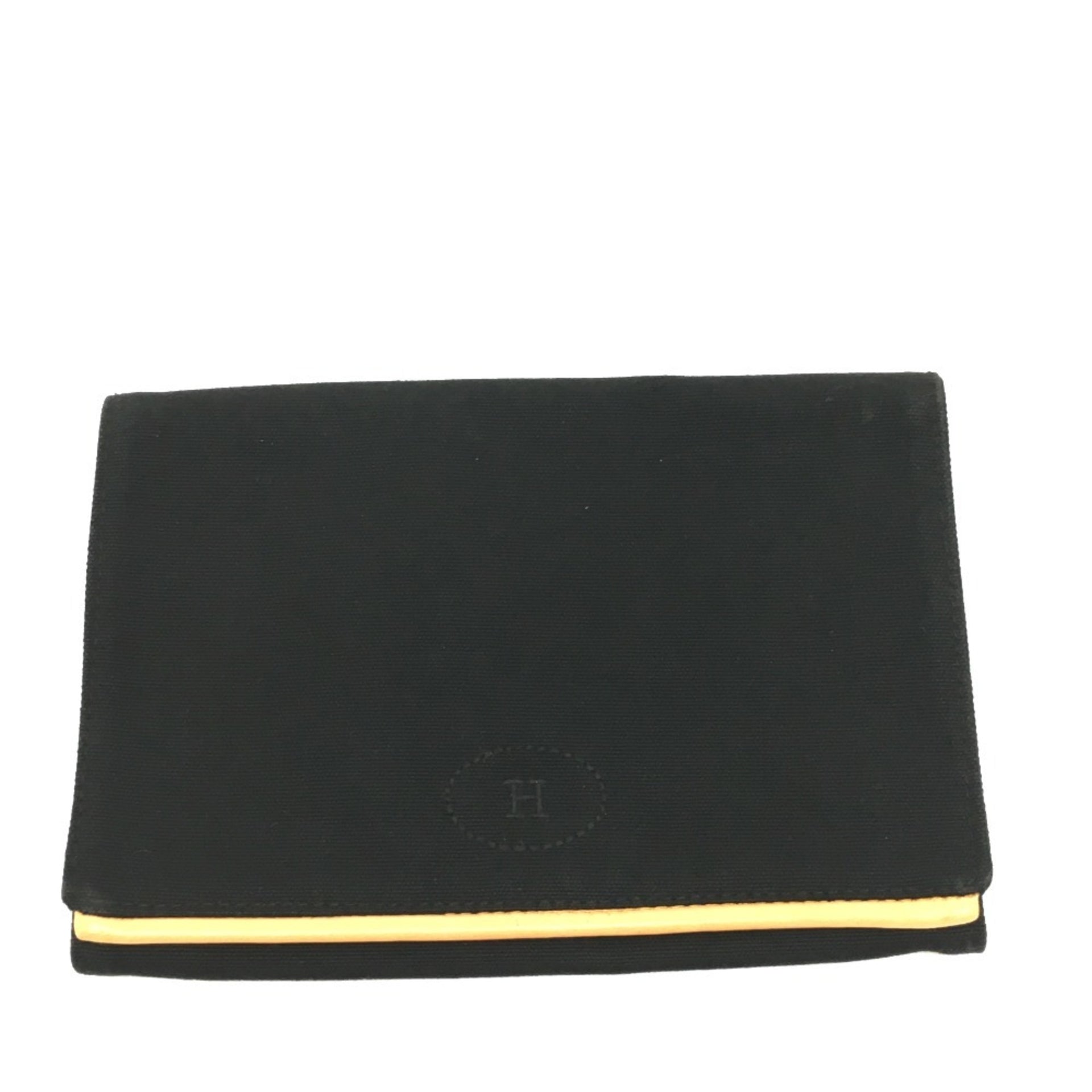 HERMES Bolide Cotton Travel Pouch, Tri-Fold Canvas, Unisex, Black