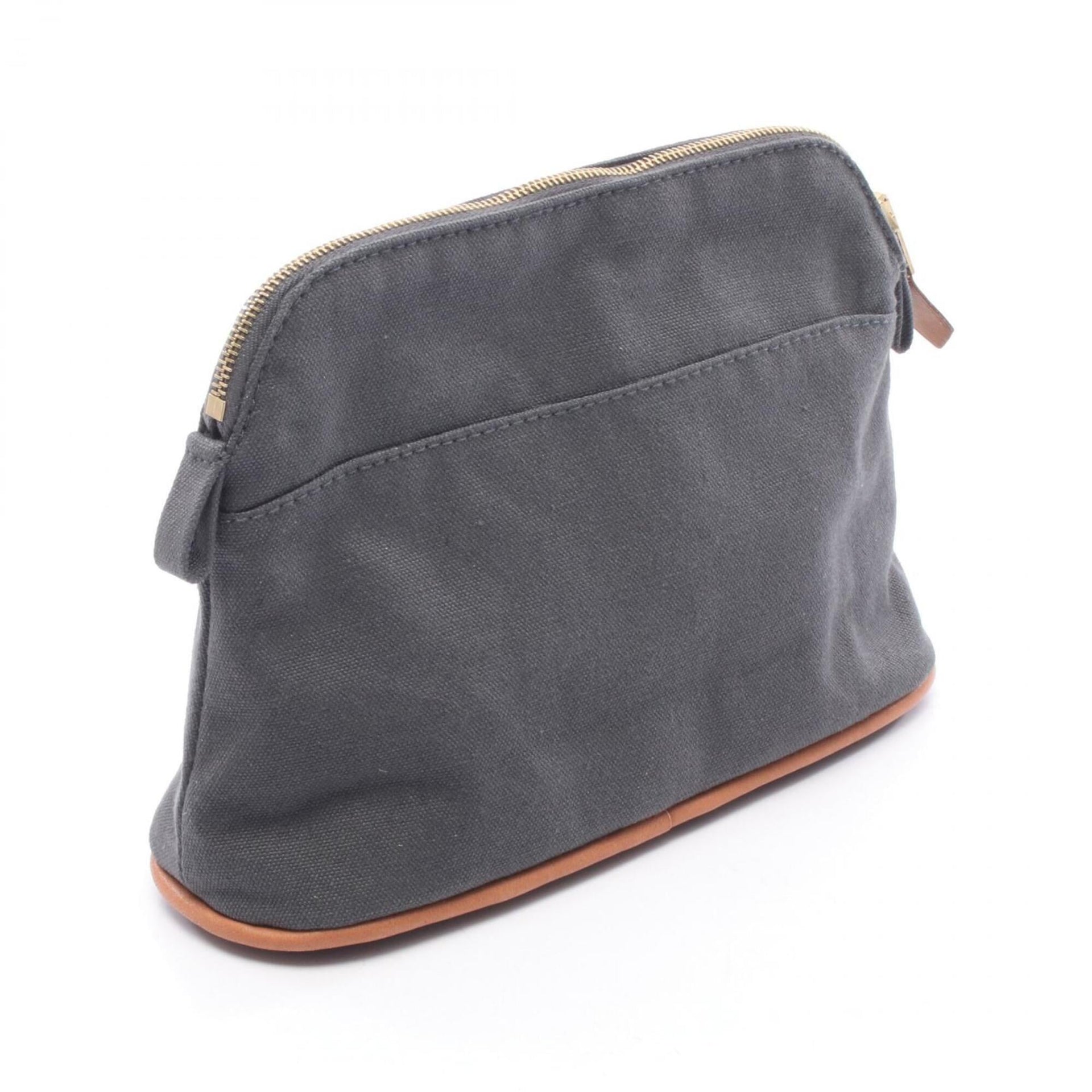 Hermes Bolide Pouch 20 Handbag, Canvas Leather, Women\'s, Gray/Brown