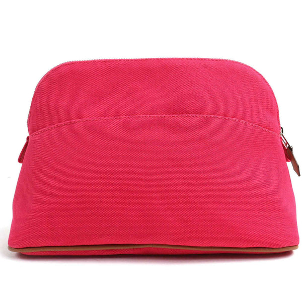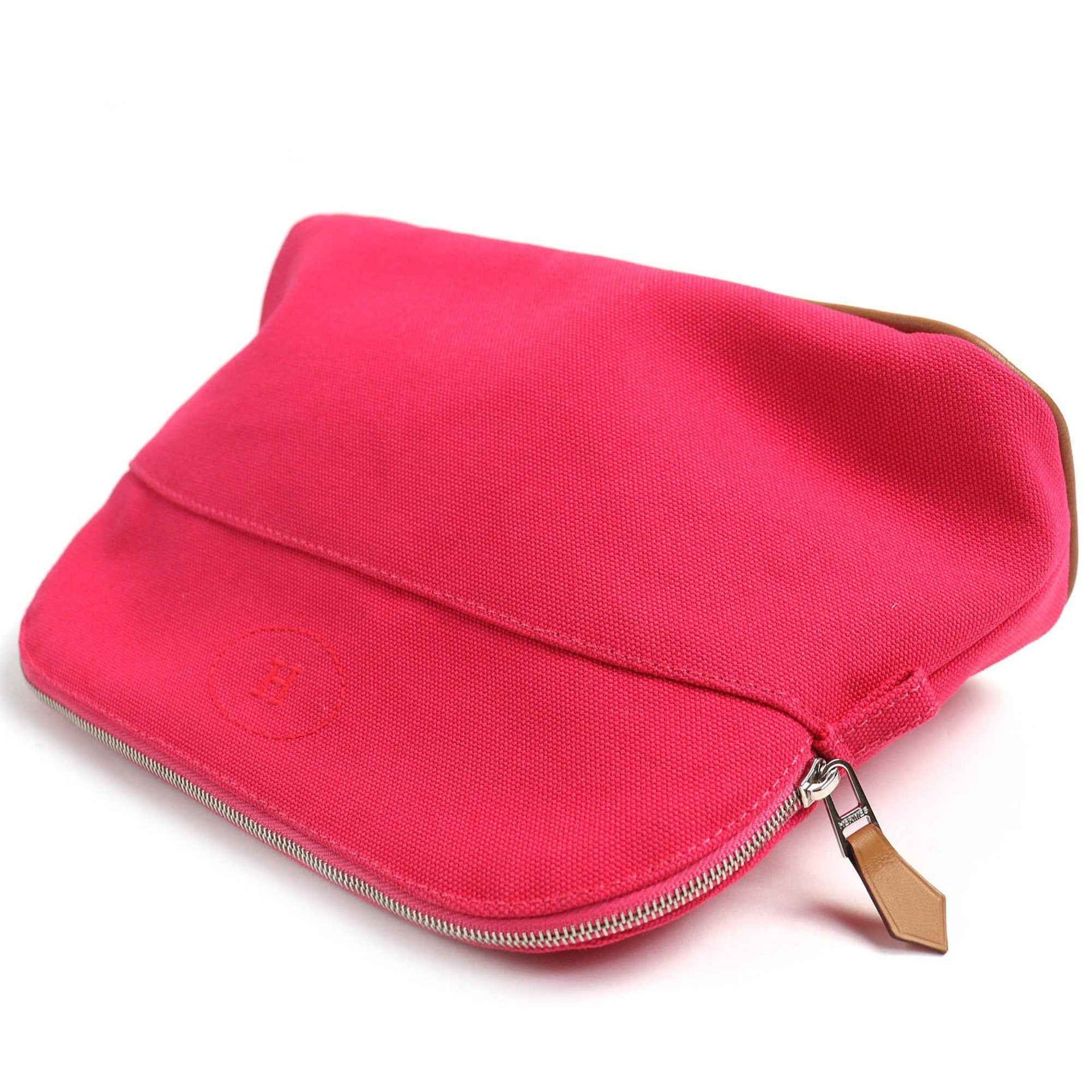 HERMES Bolide Pouch MM Hibiscus with H Logo Embroidery, Leather Finish, 100% Cotton, Cosmetic Pouch, Small Item Holder, Made in France, Women\'s, Very Popular