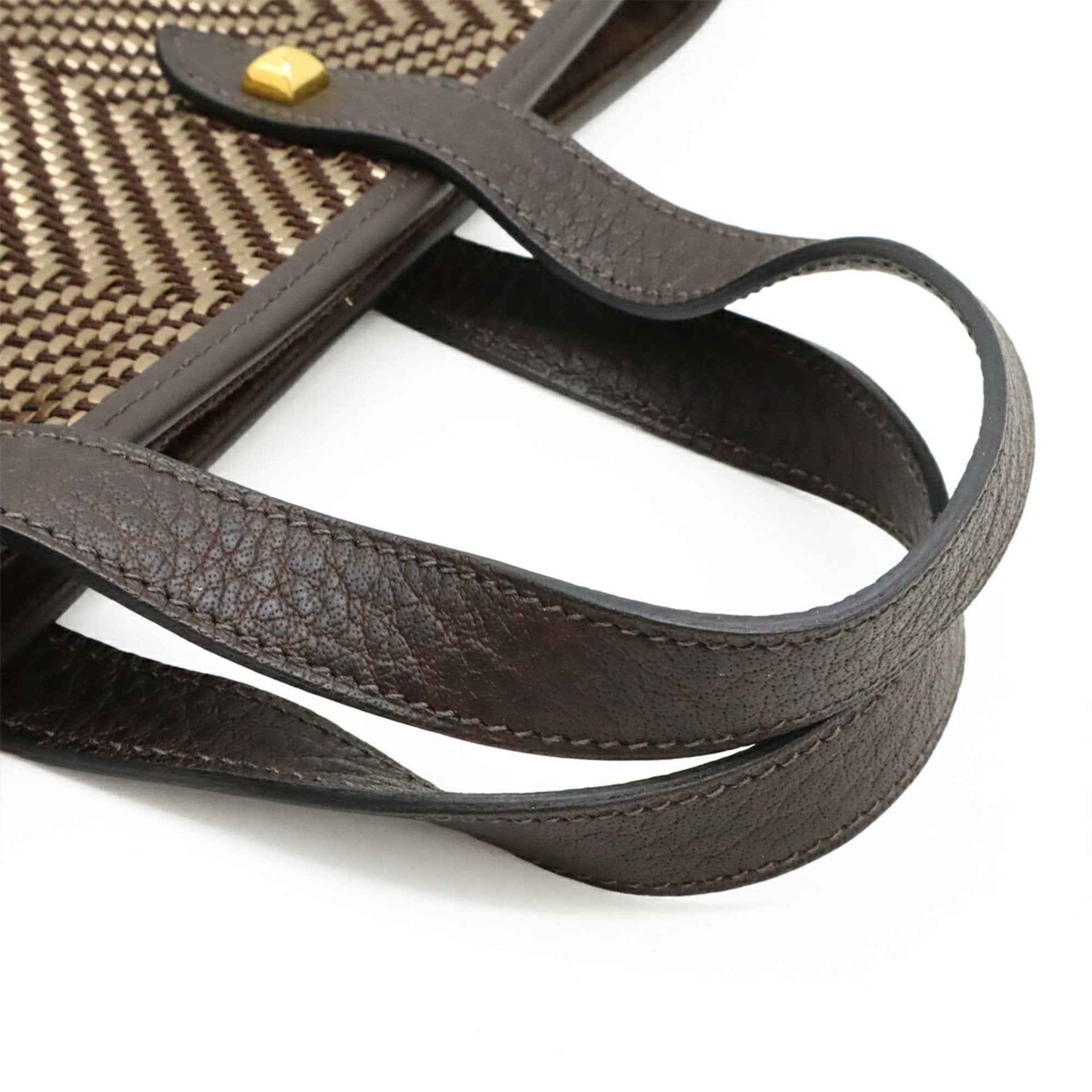 HERMES Cabas Chennai PM Tote Bag, Handbag, Leather, Dark Brown with Gold, □M Stamp