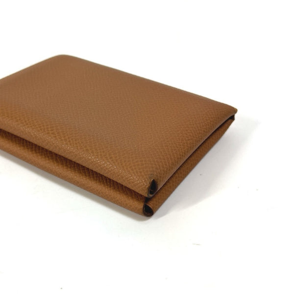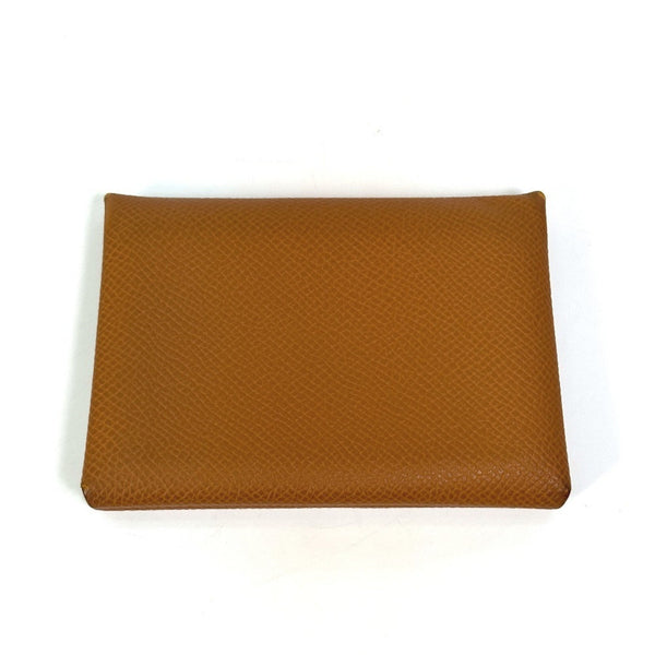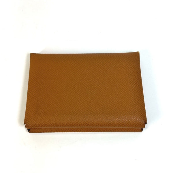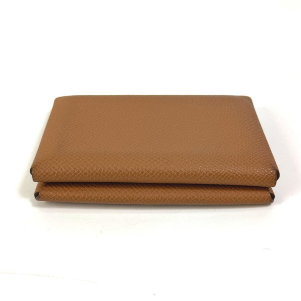 HERMES Calvi Duo Wallet, Coin Purse, Card Case, Epsom Leather, Women\'s, Gold/Brown