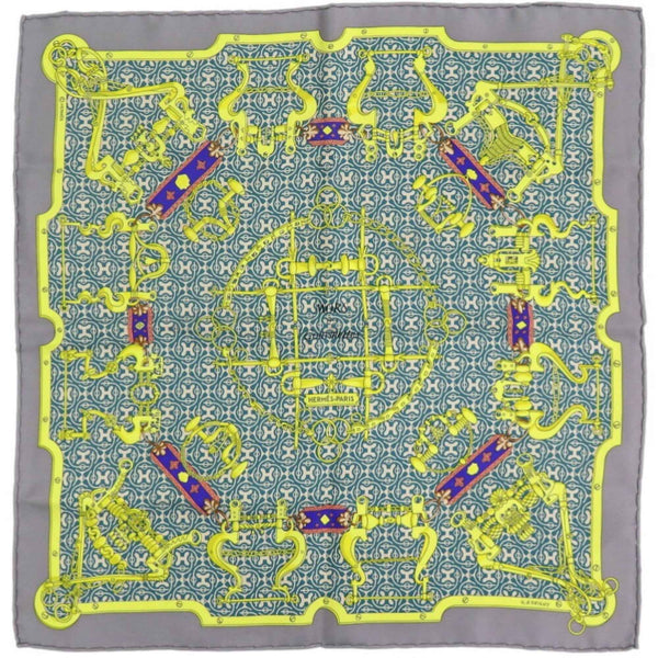 Hermès Carré 45 MORS et Gourmettes Horse Bit and Chain Silk Multicolor Scarf Muffler 0194HERMES