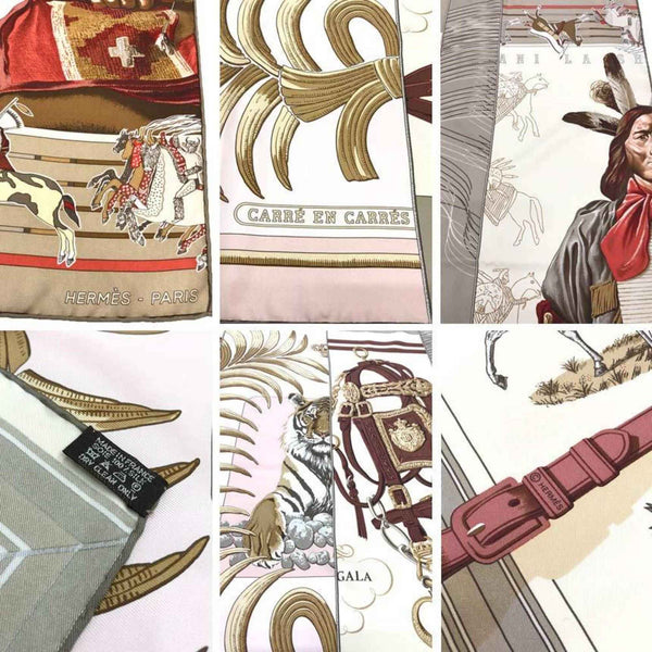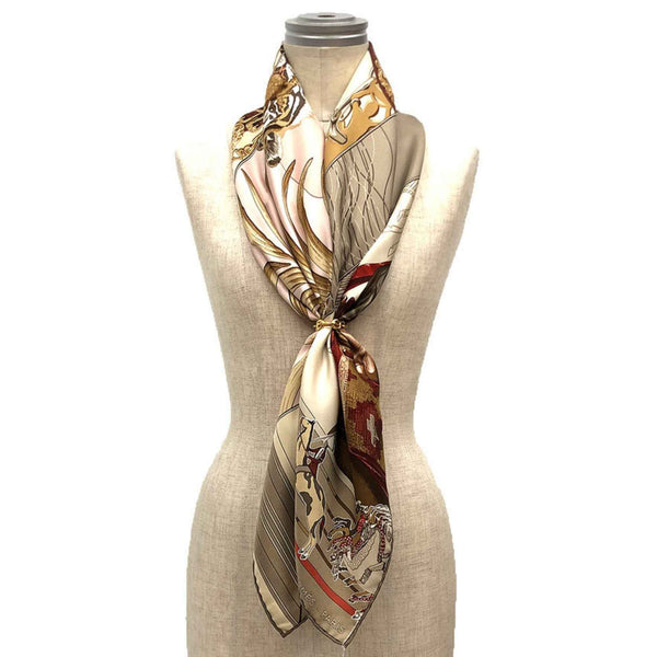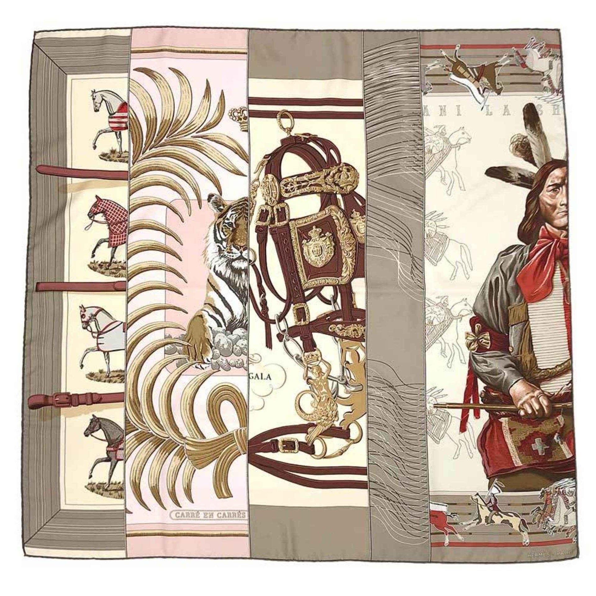 HERMES Carré 90 CARRE ON CARRES BRIDES de GALA TIGER ROYAL PANILA SHAR PAWNEE Sweaters and sweaters of the day H CINETIQUE 100% silk Pink x Beige Scarf Muffler