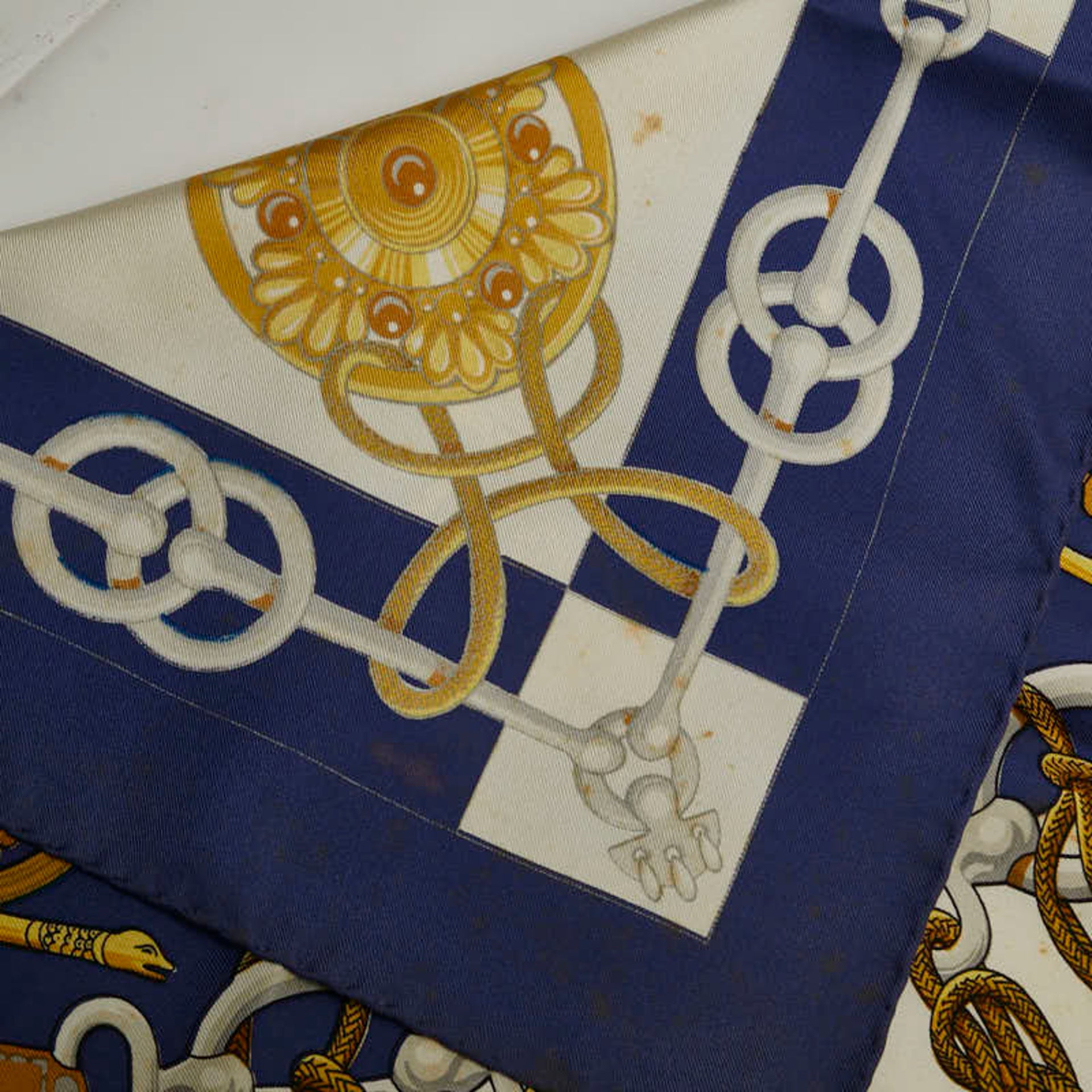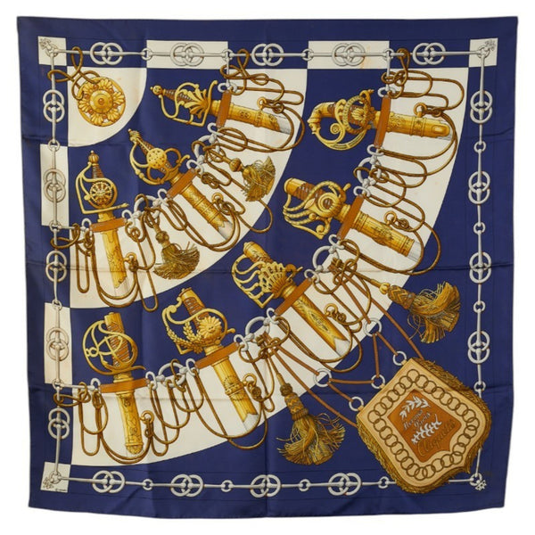 Hermes Carré 90 Cliquetis Kachikachi Sword Pattern Scarf Muffler Navy Multicolor Silk Women\'s HERMES