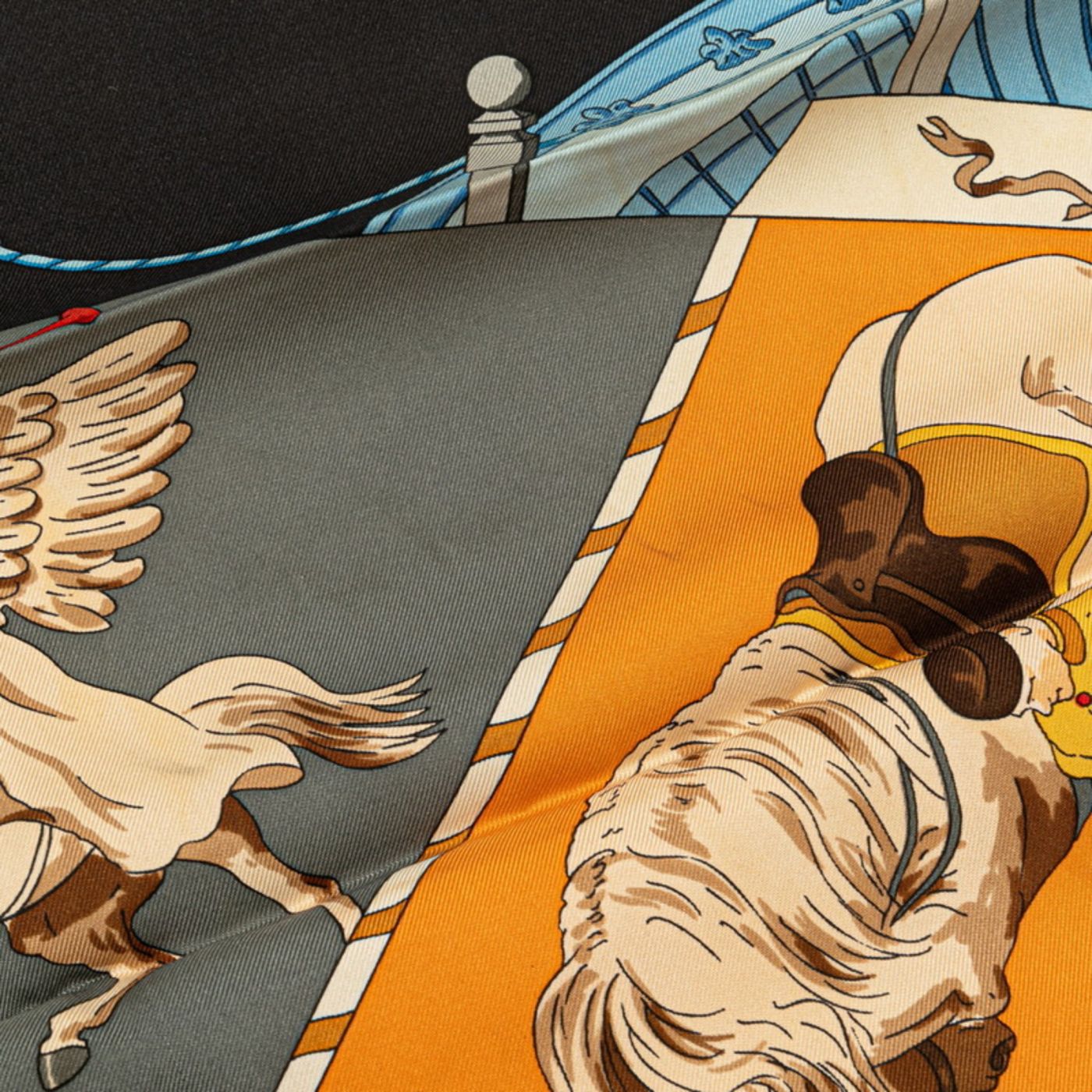 Hermes Carré 90 Musee Vivant du Cheval Chantilly Castle Horse Museum Scarf Muffler Black Multicolor Silk Women\'s HERMES