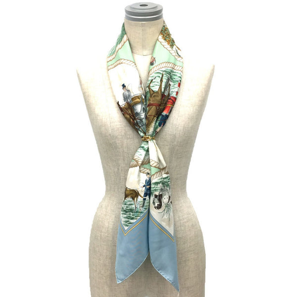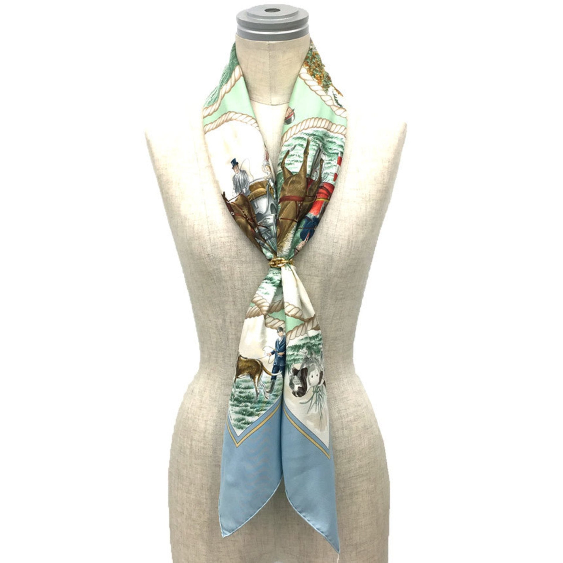 HERMES Carré 90 Scarf Muffler Auteuil en Mai Blue Silk aq11663