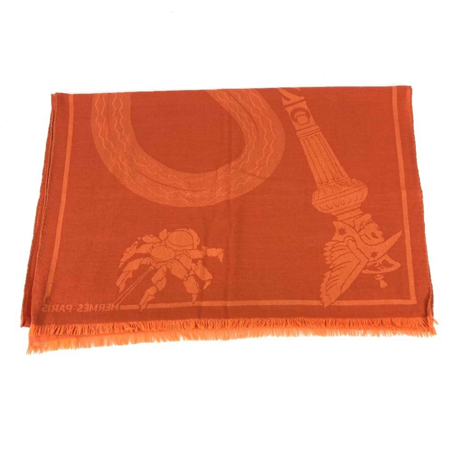 HERMES Cheval Horse Print Large Shawl/Scarf with Fringe, Wool, Women\'s, Orange