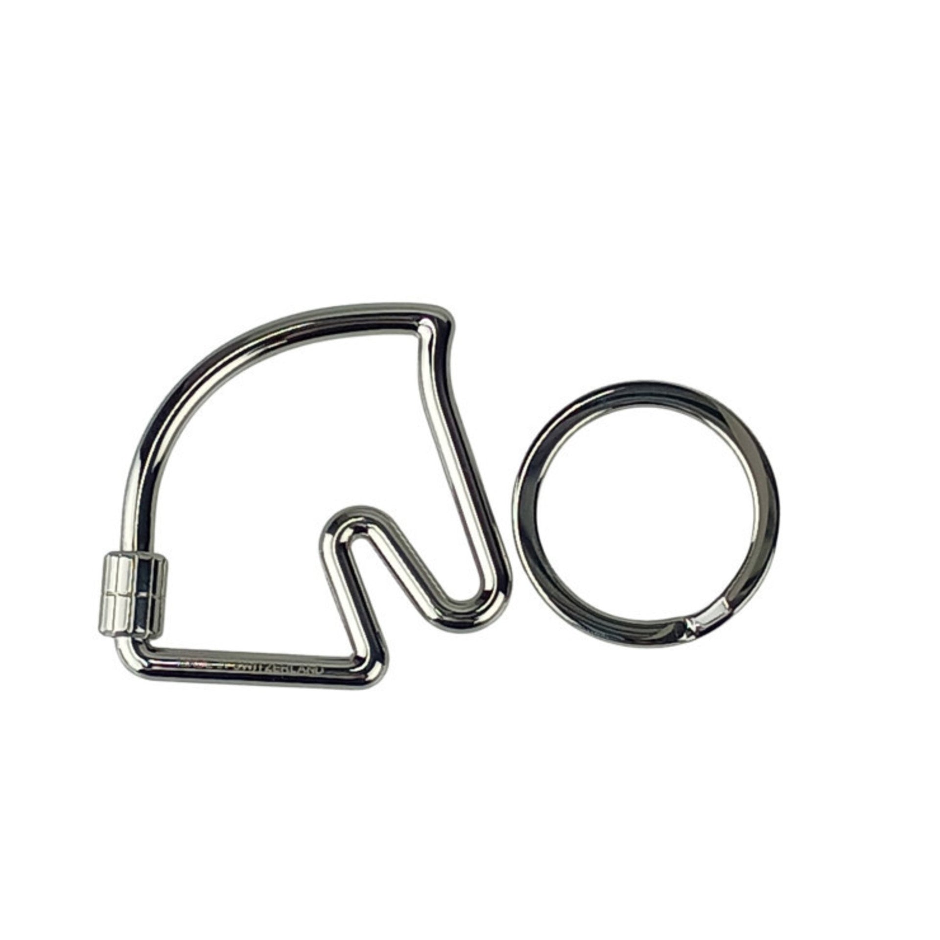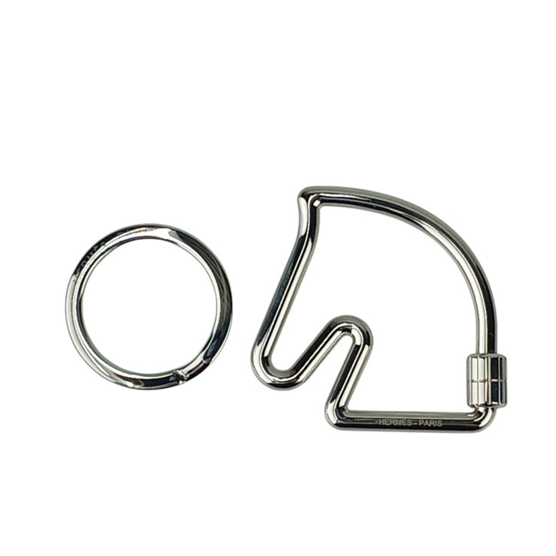 HERMES Cheval Silver Metal Keychain Key Ring for Men and Women, Horse Motif Bag Charm
