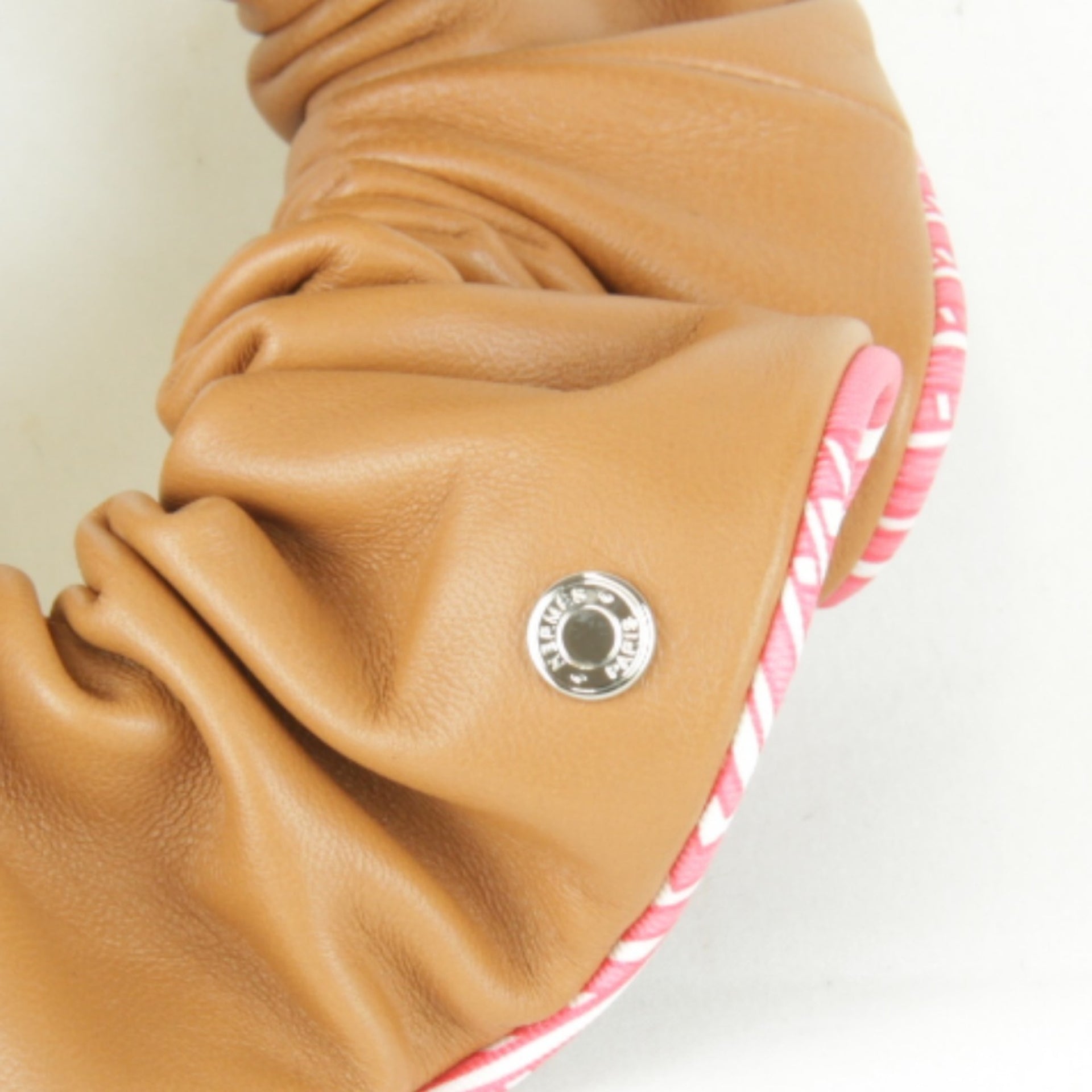 HERMES Claudia Scrunchie Gold Rose Azalee Hair Leather Women\'s