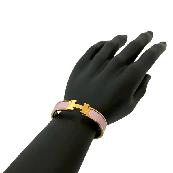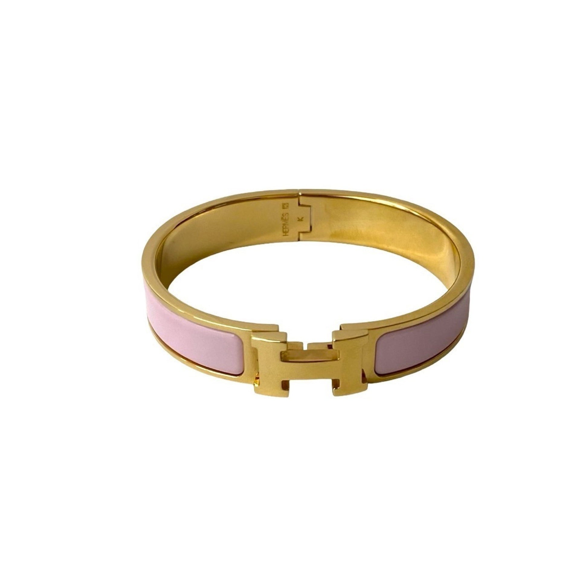 HERMES Click H Bangle Metal Bracelet Accessory for Women, Gold and Pink, 1738b