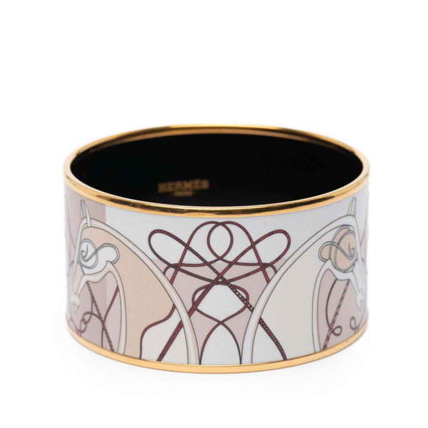 Hermes Coup de Fouet Horsewhip Motif Bangle in Gold, Beige, and Multicolor Plated for Women