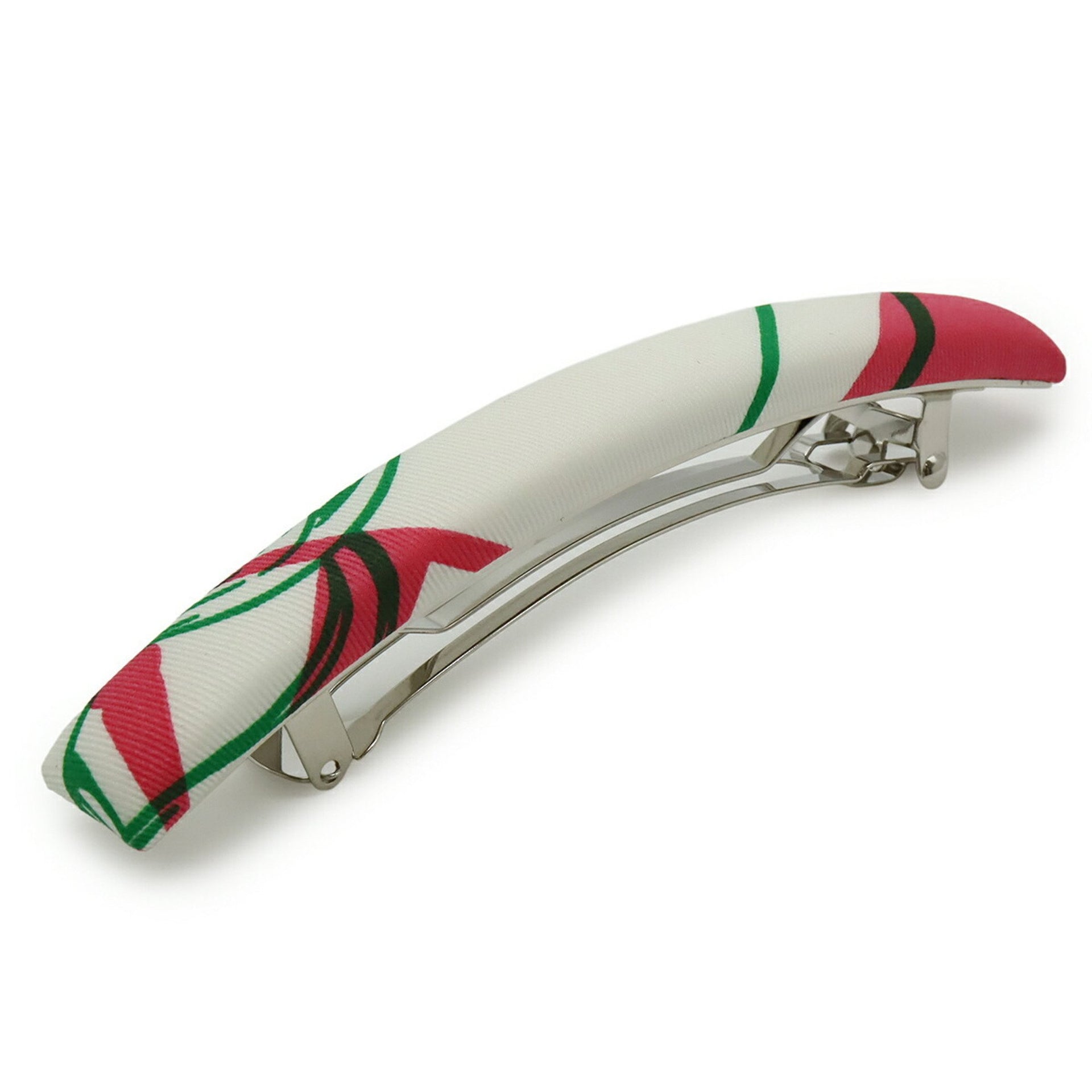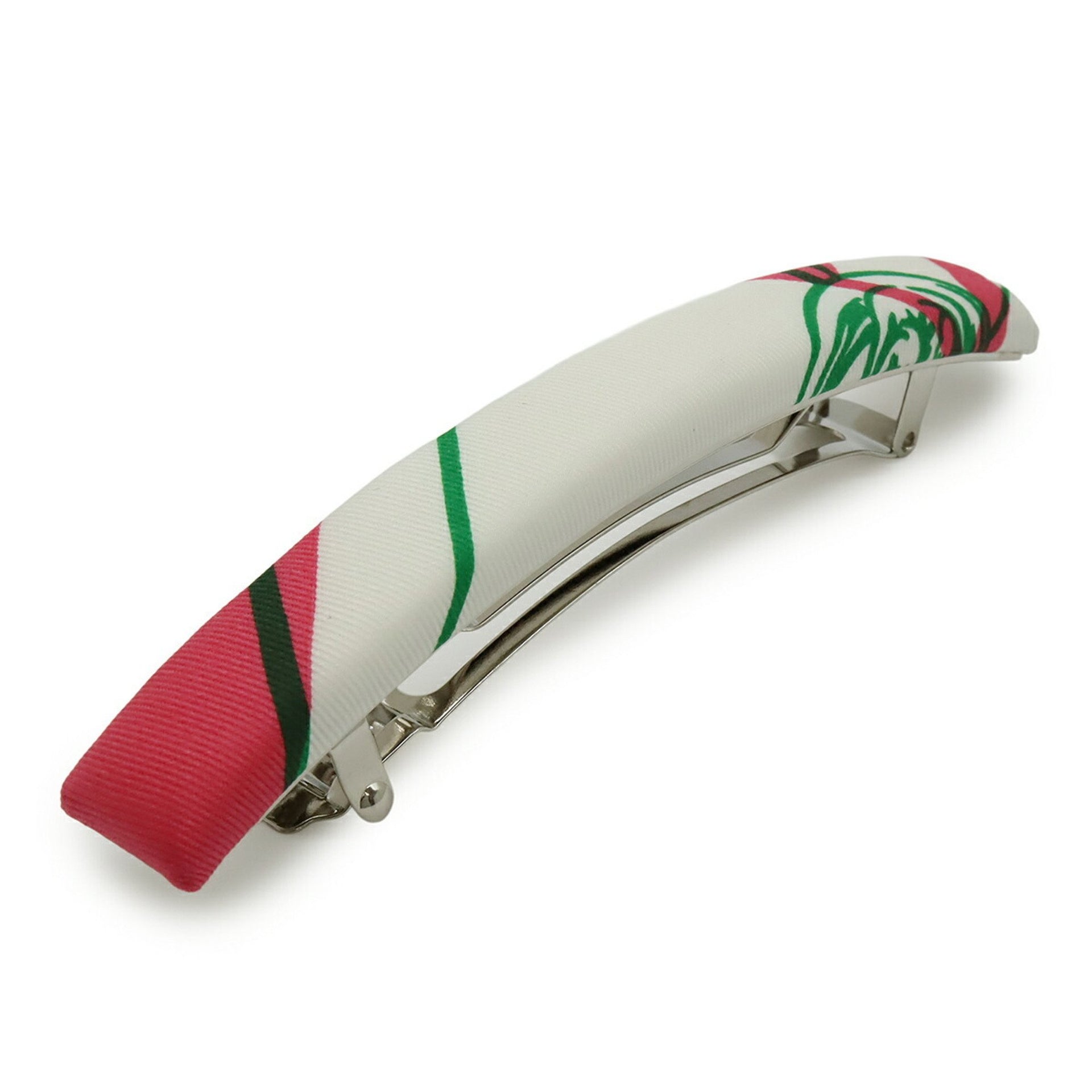 HERMES Eclipse GM Barrette Hair Clip, Elsa La Folle Parade, Silk, White and Pink