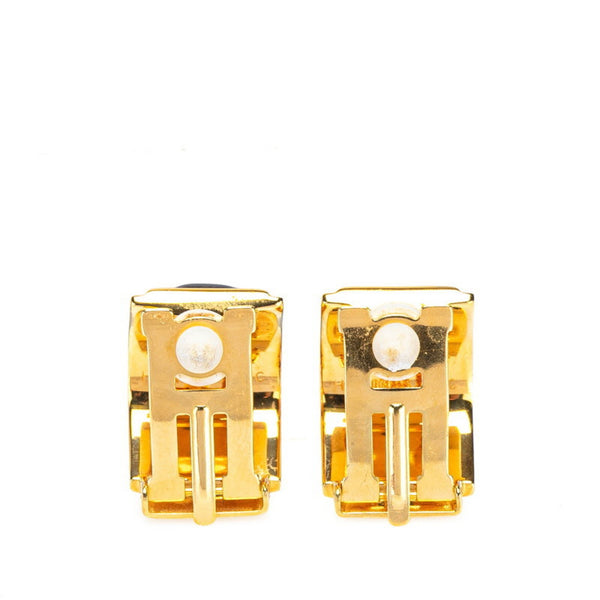Hermes Enamel PM Chain Cloisonne Earrings, Gold and Blue Plated, Women\'s