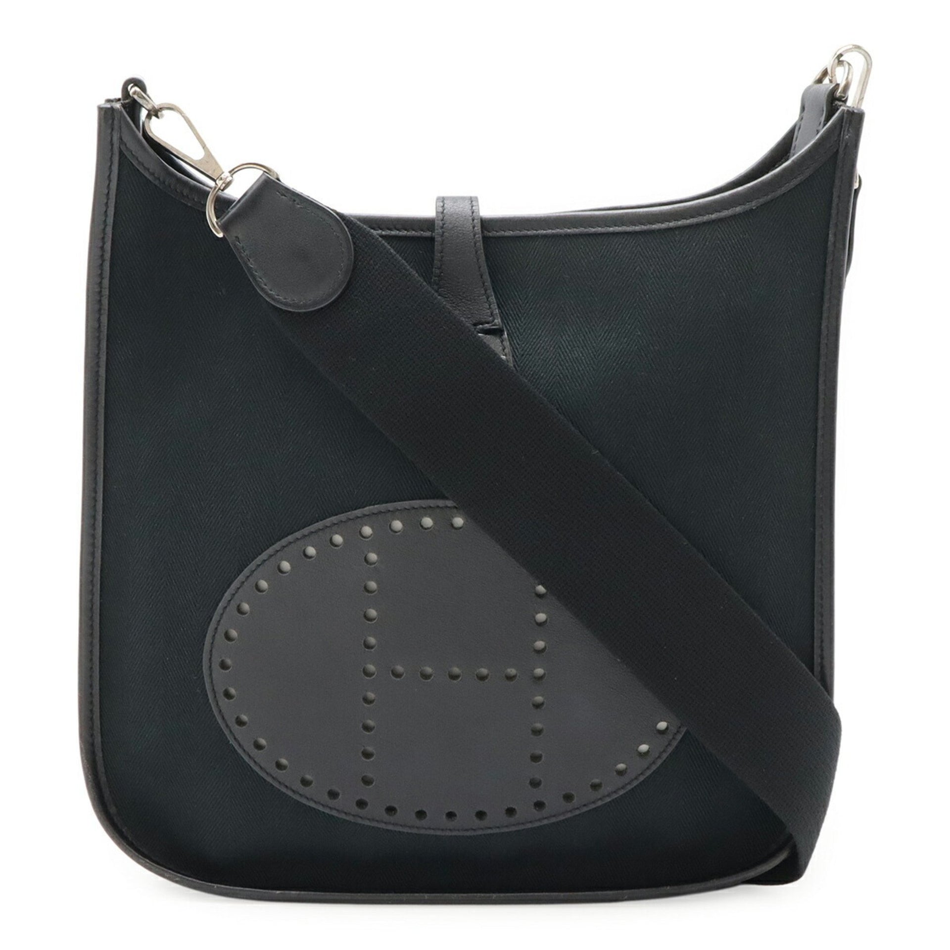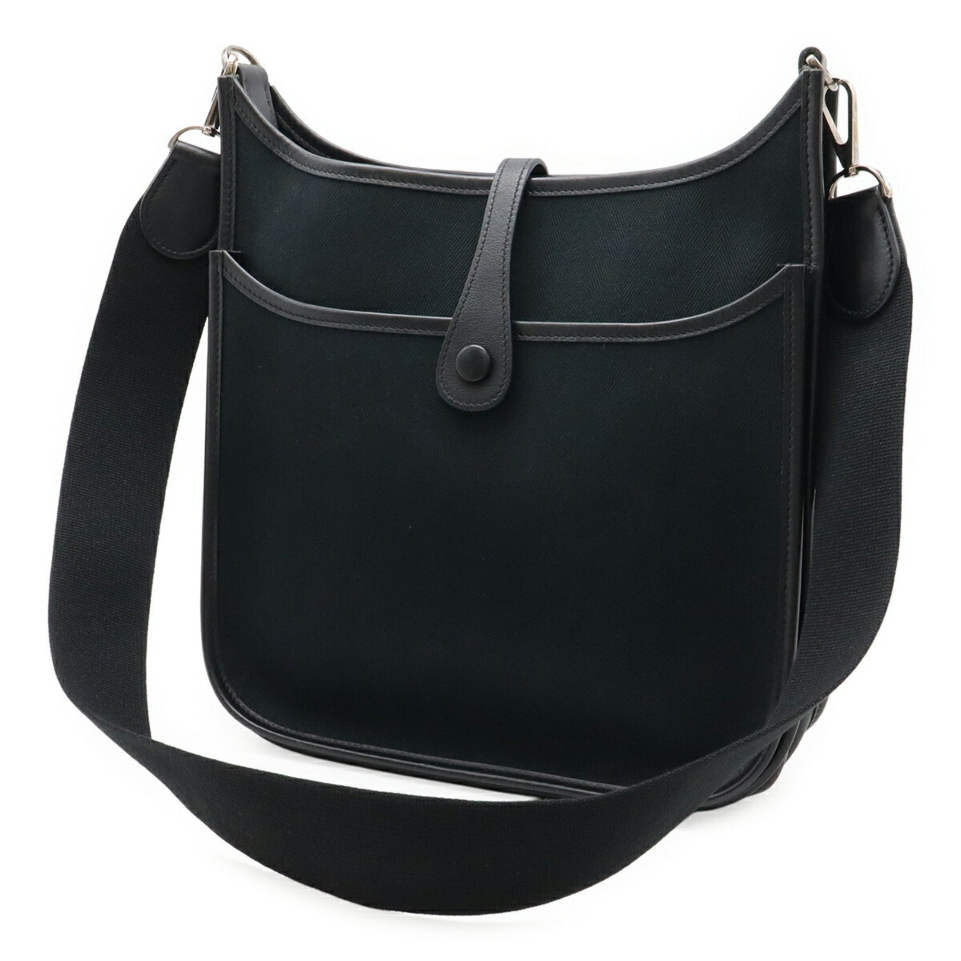 HERMES Evelyn II 2 PM Shoulder Bag in Toile H Leather (Black) with J Stamp