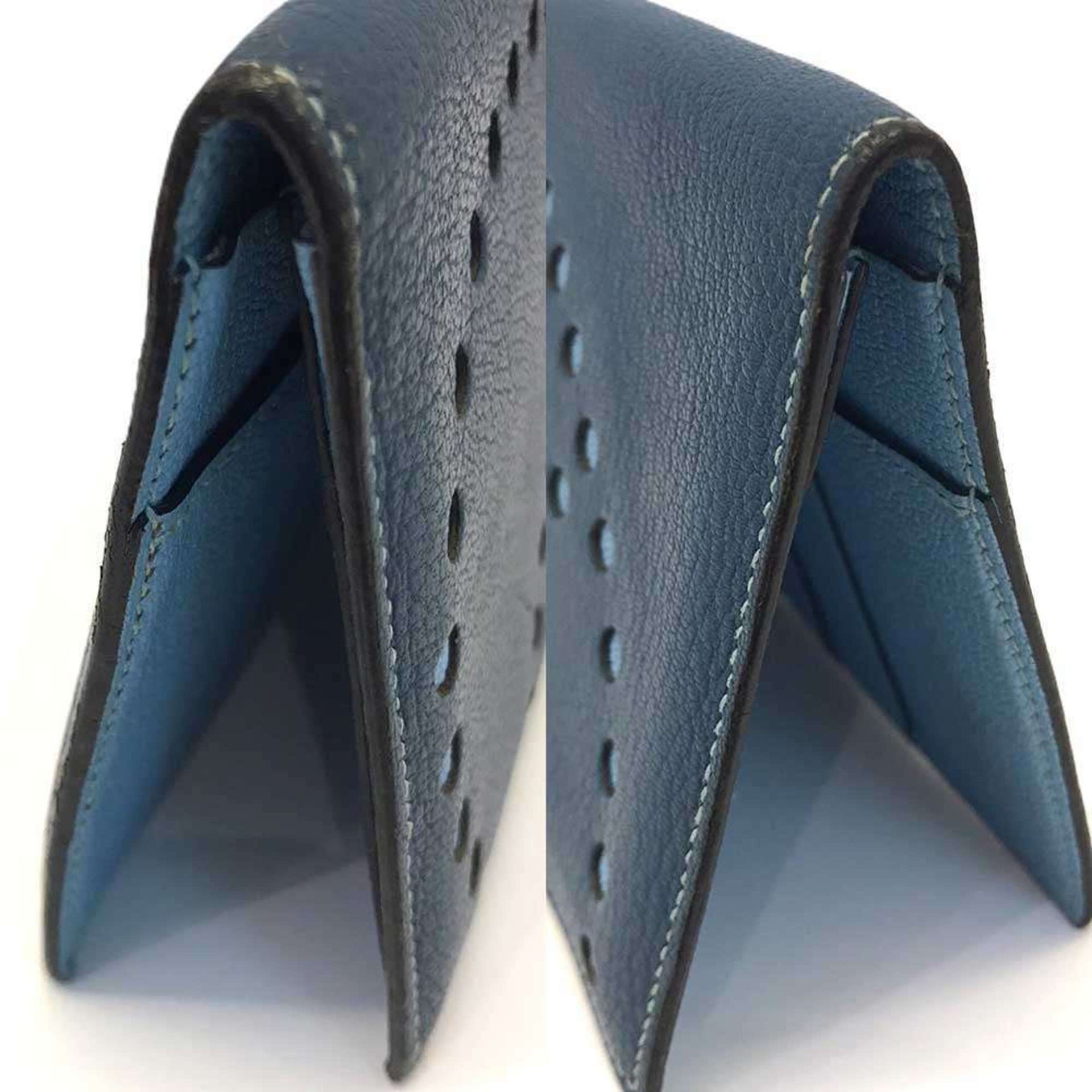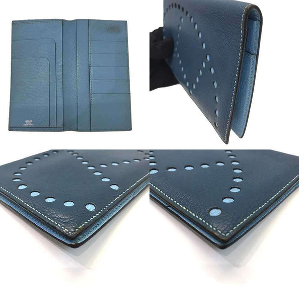 Hermès Evelyn Long Wallet, Chevre Leather, Perforated, Navy Blue, Light □Q Stamped, HERMES