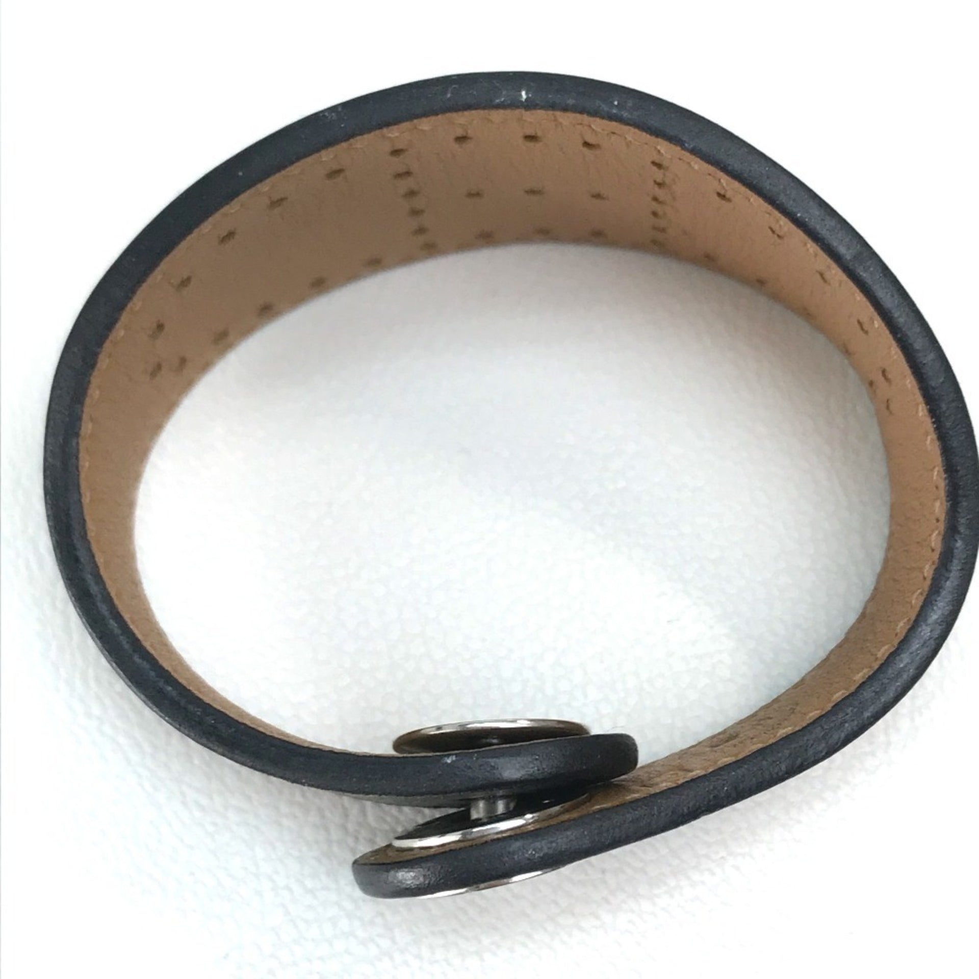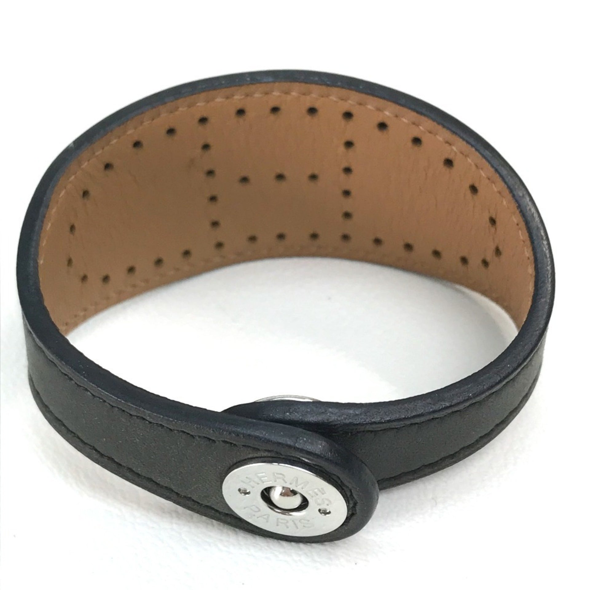 HERMES Evelyn Punched Leather Bracelet, Unisex, Black/Brown