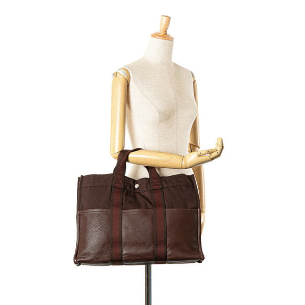 Hermès Four Tou MM Half Leather Tote Bag Brown Canvas Women\'s HERMES