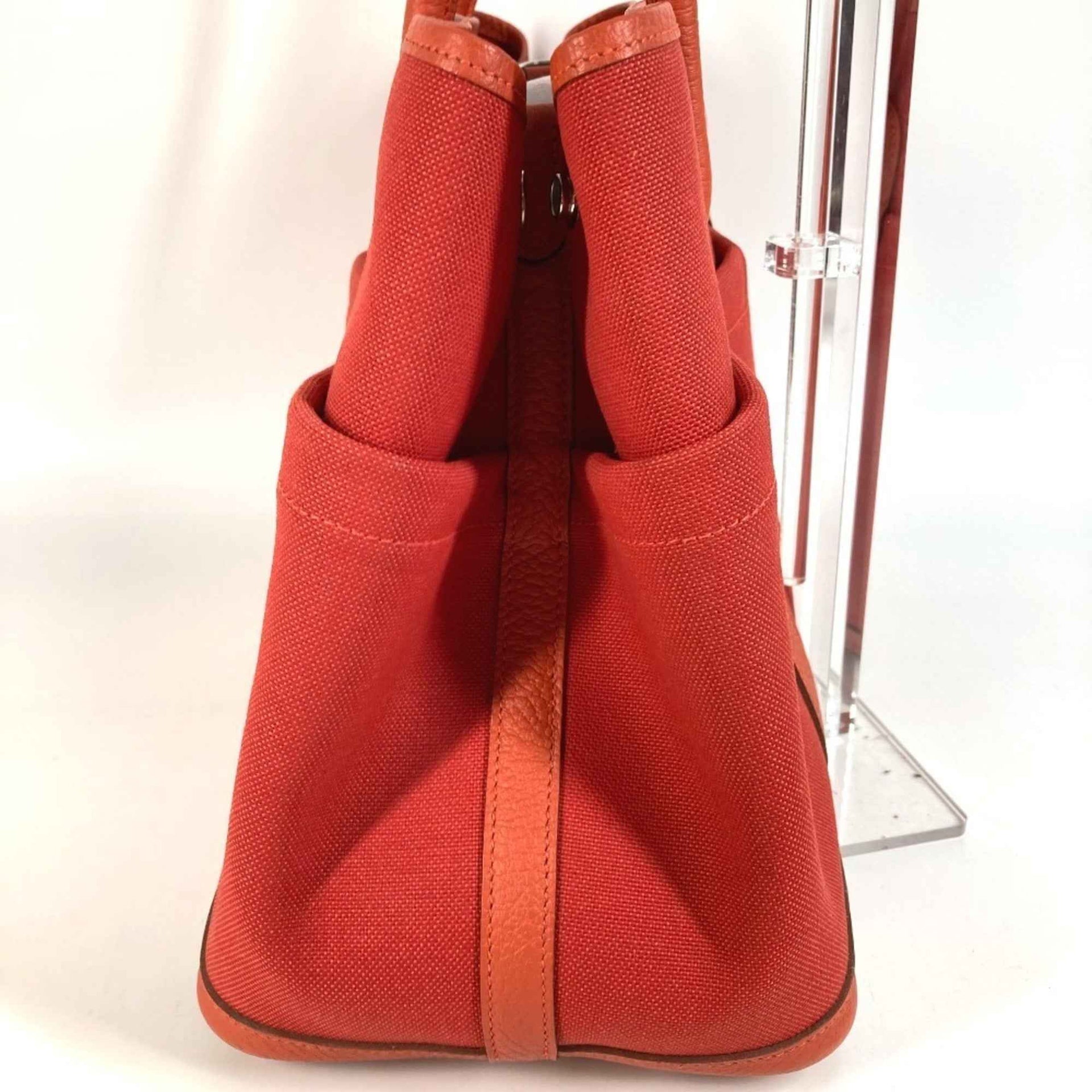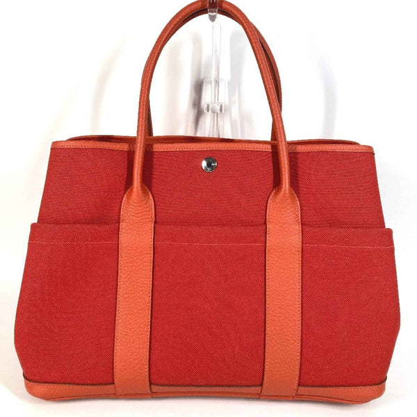 HERMES Garden Party Pocket Tote Bag, 36 PM, Toile Militaire, Vache Country, Men\'s/Women\'s, Rouge Tomato x Capucines, Red