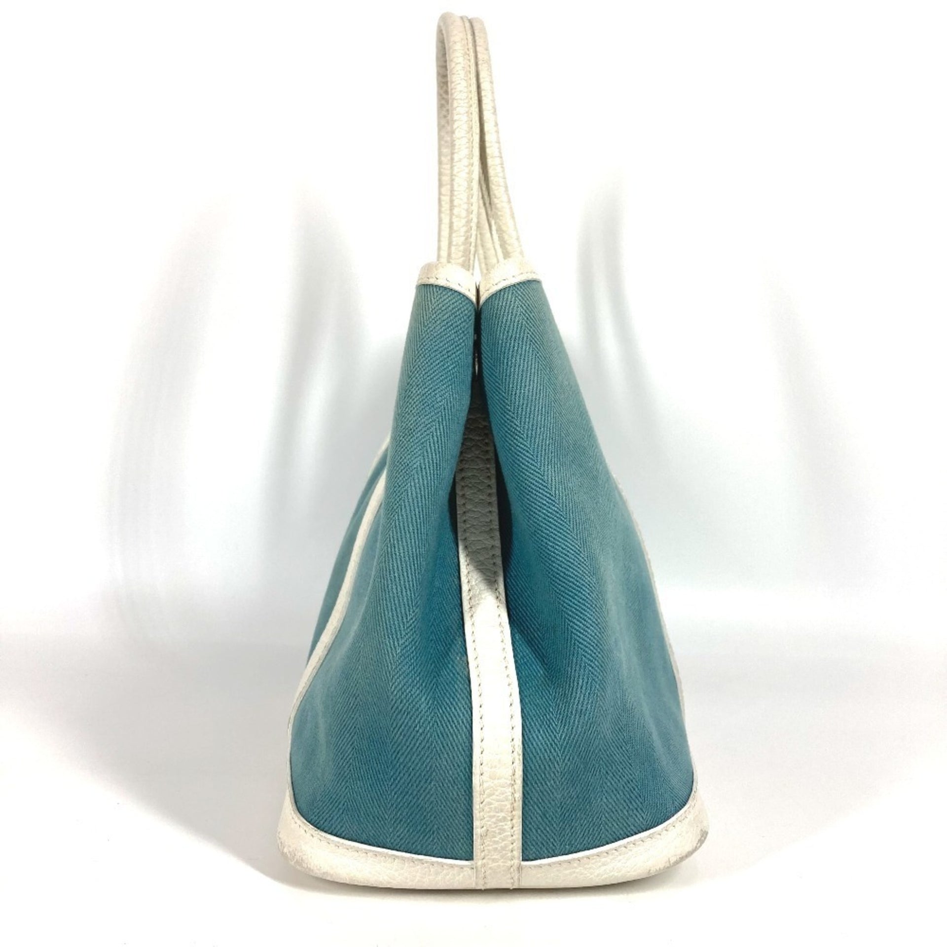 HERMES Garden Party TPM Toile Officier Leather Handbag/Tote Bag, Women\'s, Blue