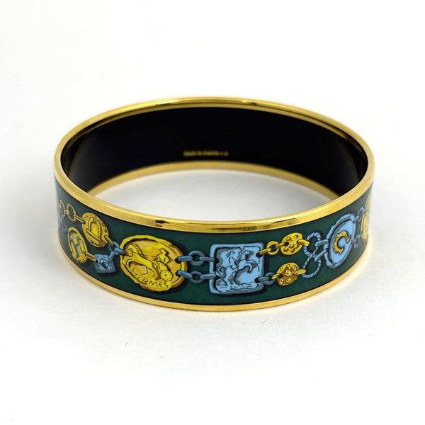 Hermes GM Enamel Cloisonne Bracelet in GP Gold and Green for Women