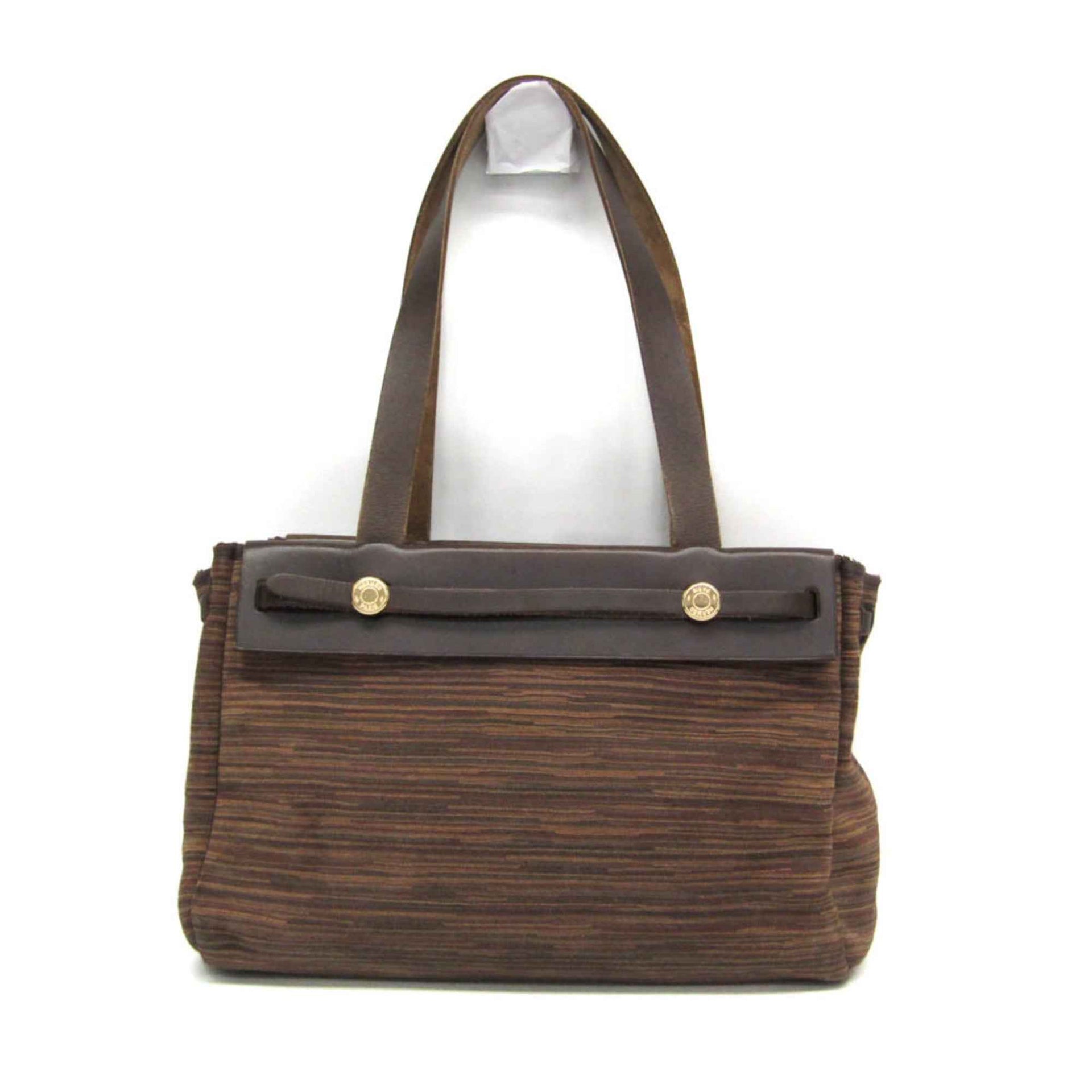 Hermes Her Bag Cavas PM Women\'s Toile Officier,Vibrato Leather Tote Bag Brown,Khaki