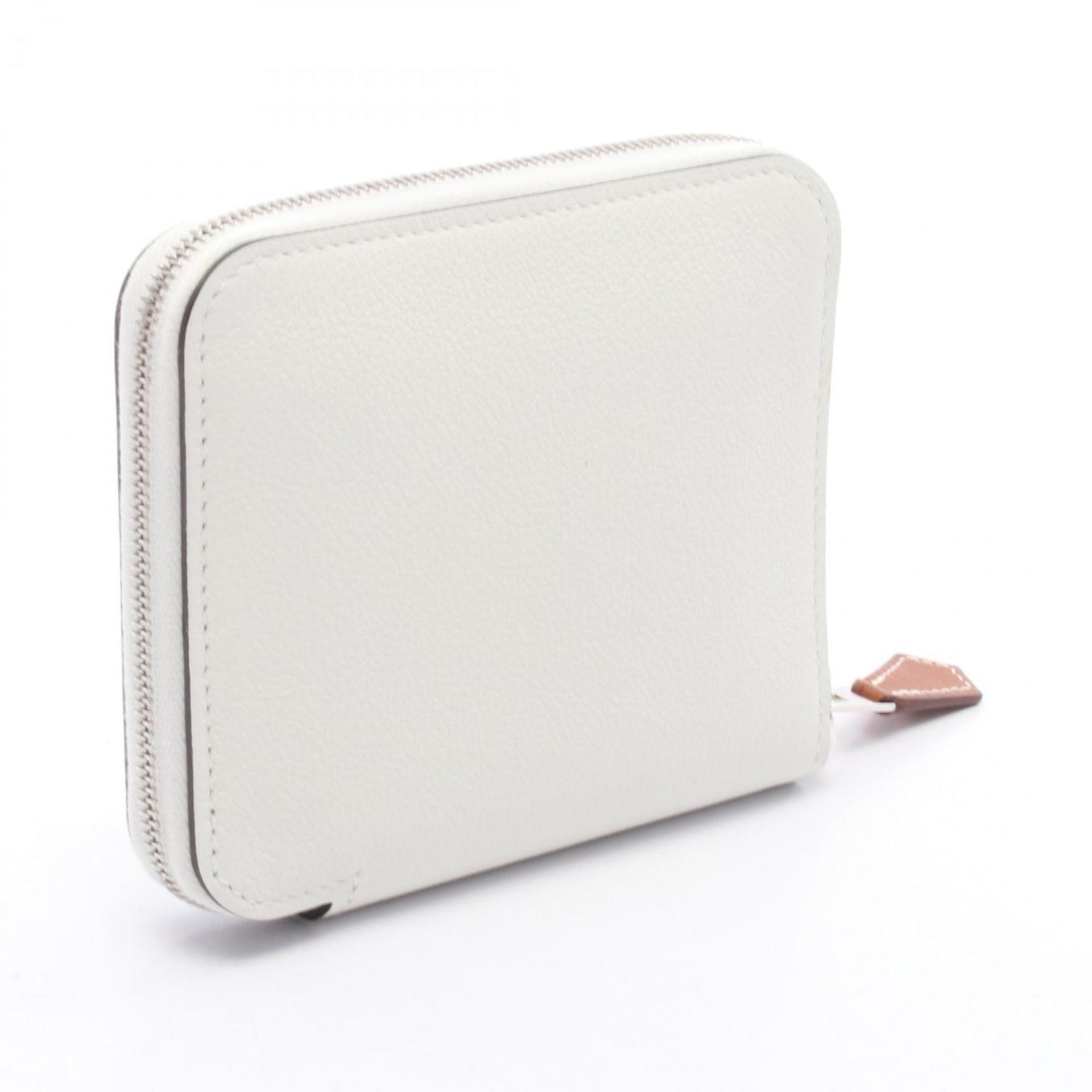 Hermes Hermès Azap Compact Silkin Round Wallet Leather Evercolor Women\'s White