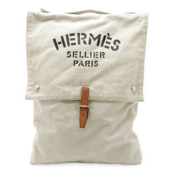 HERMES Hermès Baggy Baggage Aline Handbag Clutch Bag Toile Chevron Leather Natural Camel