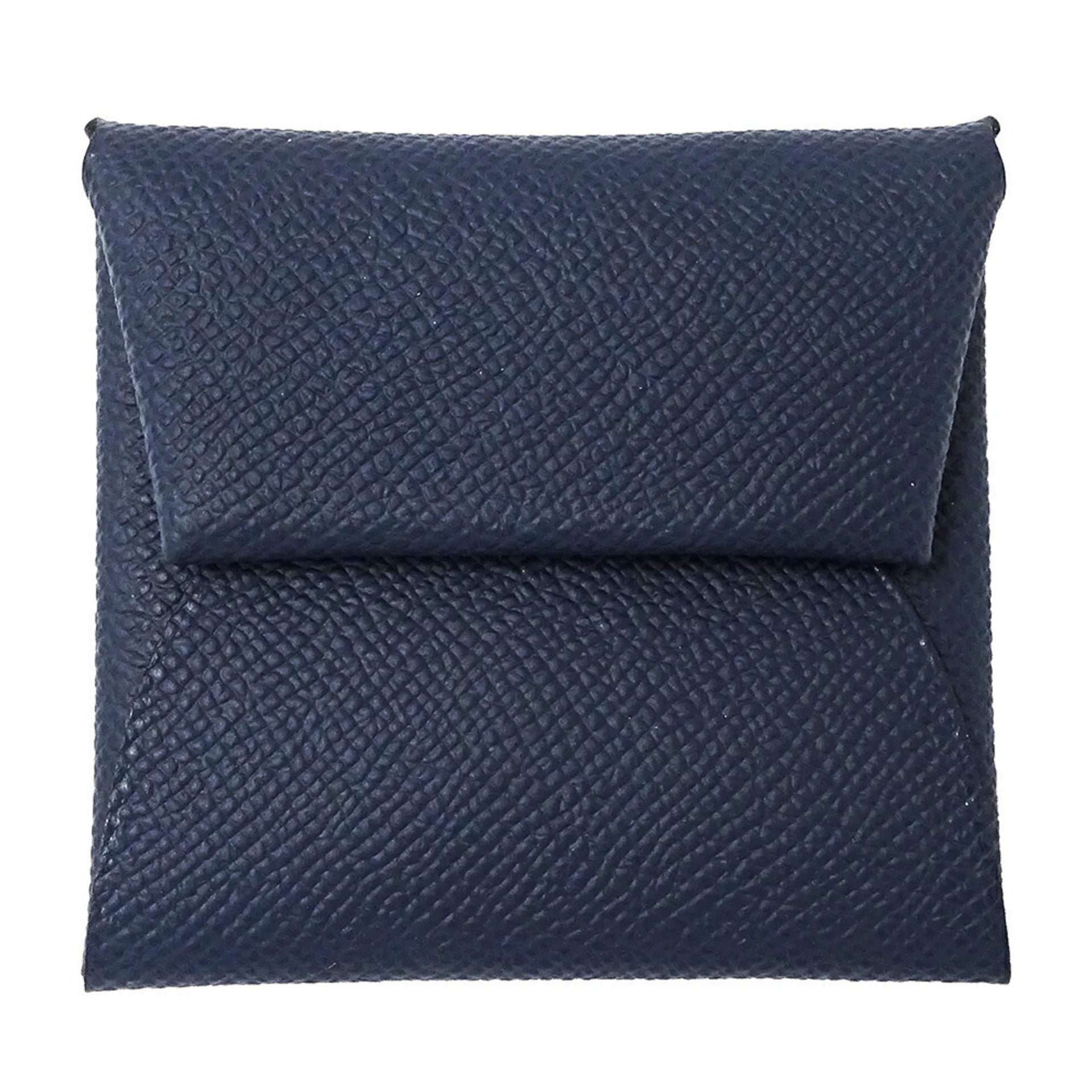 Hermes Hermès Bastia wallet, Taurillon Clemence leather, navy blue, coin purse, mini compact, with double engraving.