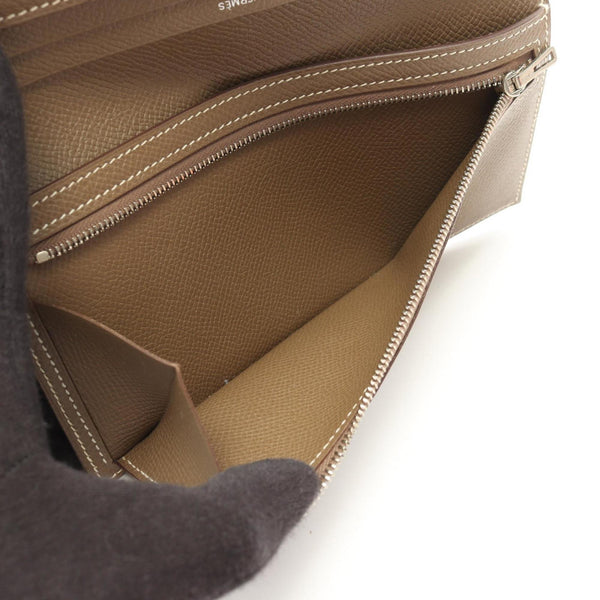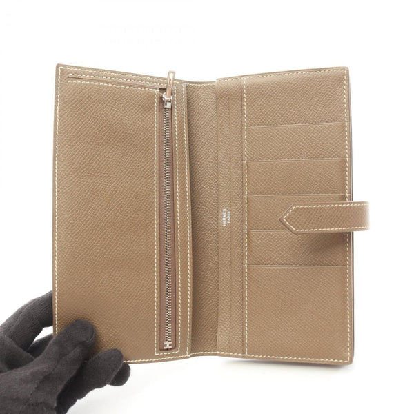 Hermes Hermès Bearn soufflet Etoupe bifold long wallet in Epsom leather, gray for women