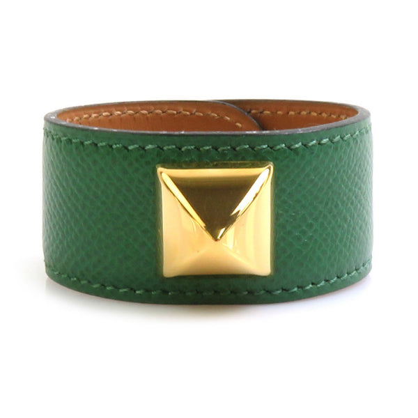 Hermes HERMES bracelet Medor leather metal green gold ladies e60427a