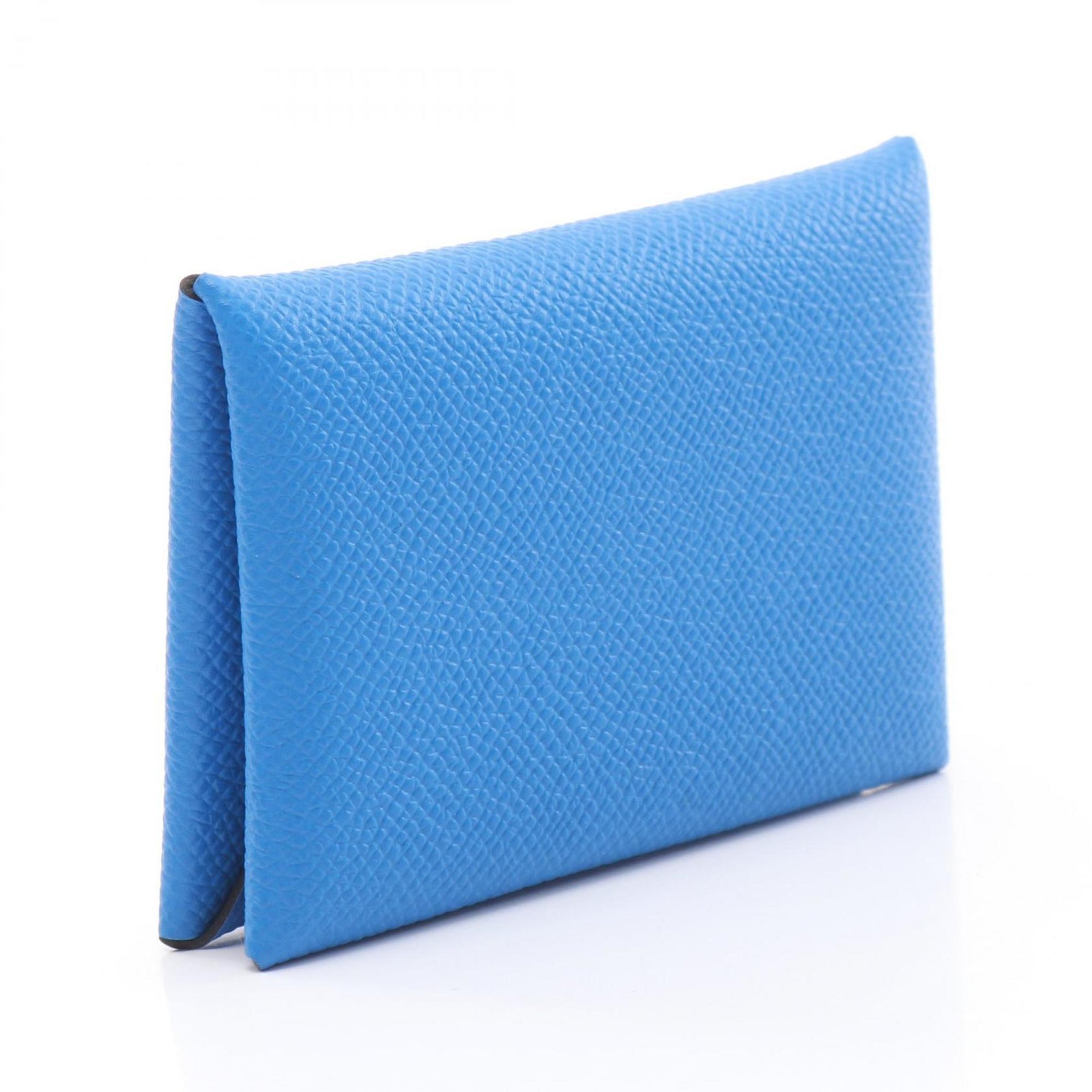 Hermes HERMES Calvi Verso Wallet/Coin Case Wallet Calfskin (Cowhide) Veau Epsom Leather Women\'s Blue