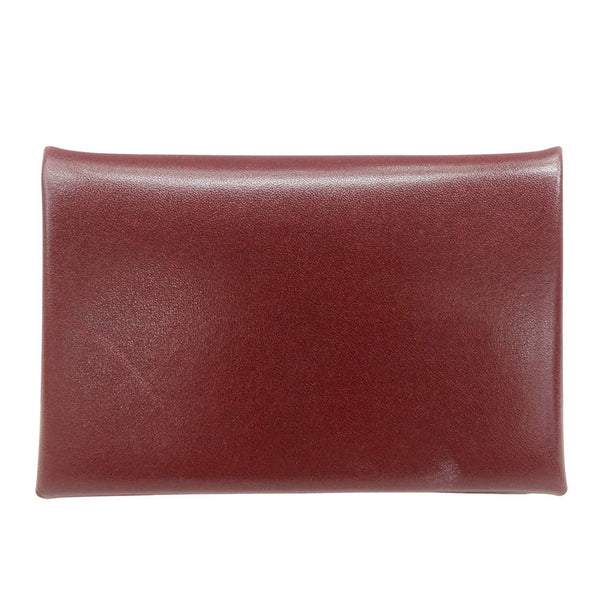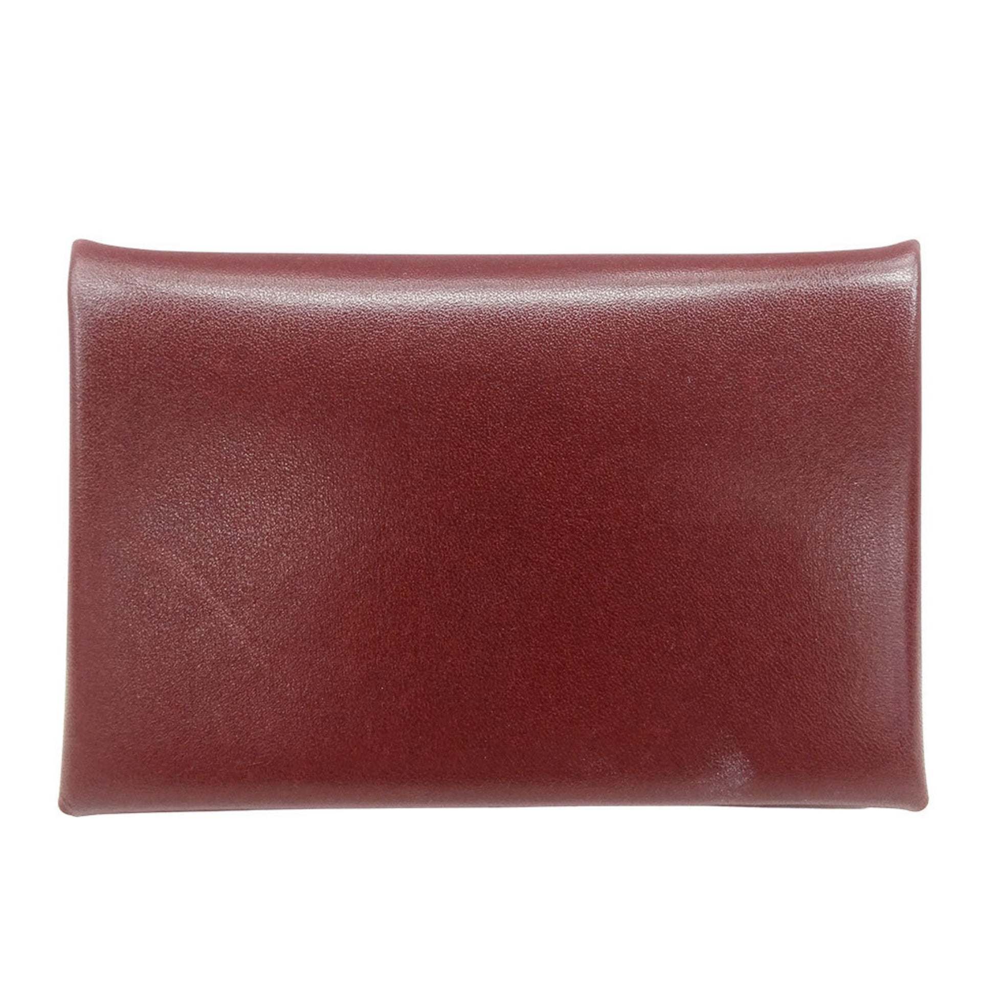 Hermes Hermès Card Case for Men and Women, Calvi Box Calf Leather, Bordeaux Red, Business Holder, B Stamp (Manufactured in 2023)
