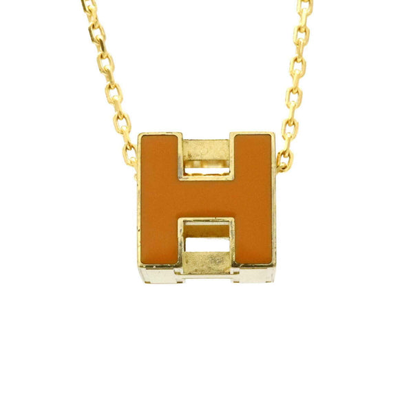 HERMES Hermès Carge d\'Ache H Cube Necklace Choker Pendant Orange