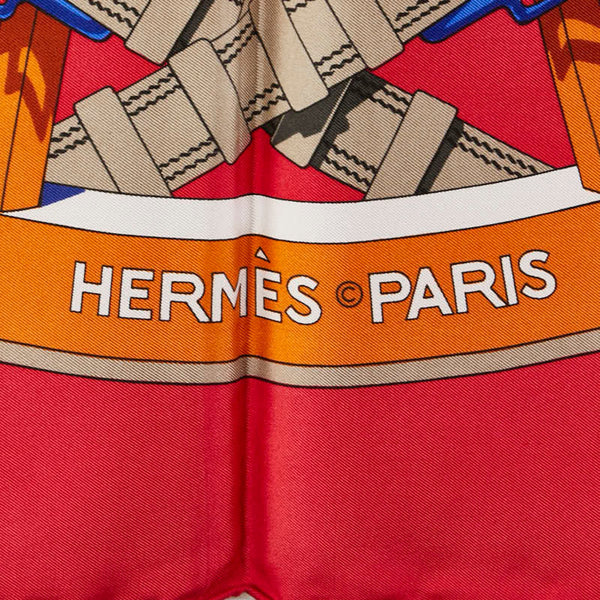 Hermes Hermès Carré 90 \"En Roue Libre\" (Wheel of Freedom) scarf, red and multicolored silk, for women.