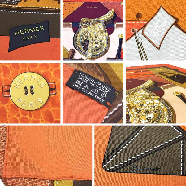 HERMES Hermes Carre 90 Scarf Muffler TOUT CUIR All leather Horse tack Gloves Bag Orange x Brown 100% silk