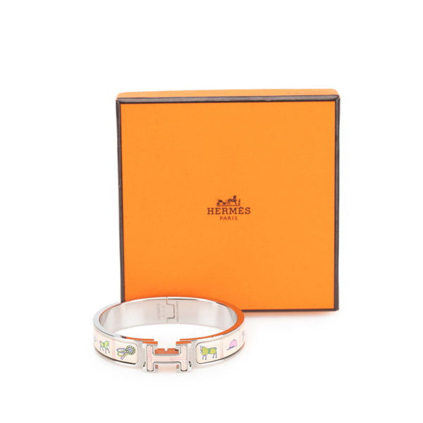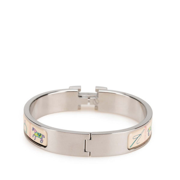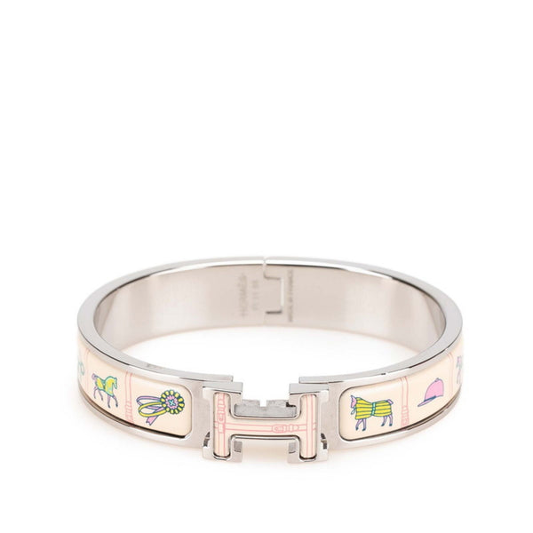 Hermes Hermès Click H PM Horse Blanket Bangle in Silver, Beige, and Multicolored Metal for Women